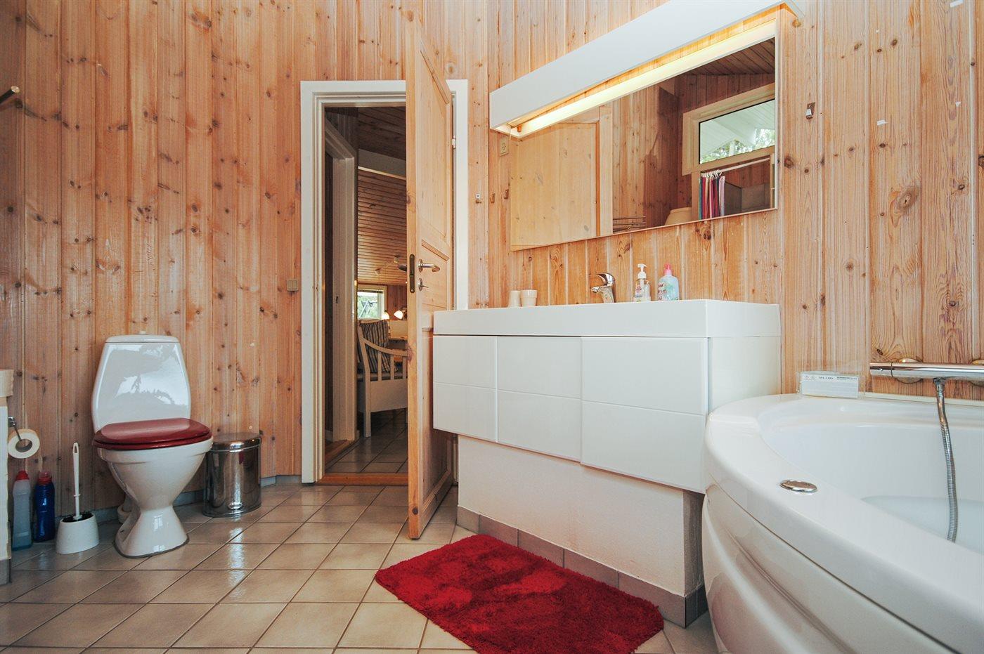 Der er 1 badeværelse med bruseniche og 1 toilet.. Der er gulvvarme på 1 badeværelse. I saunaen er der mulighed for afslapning.