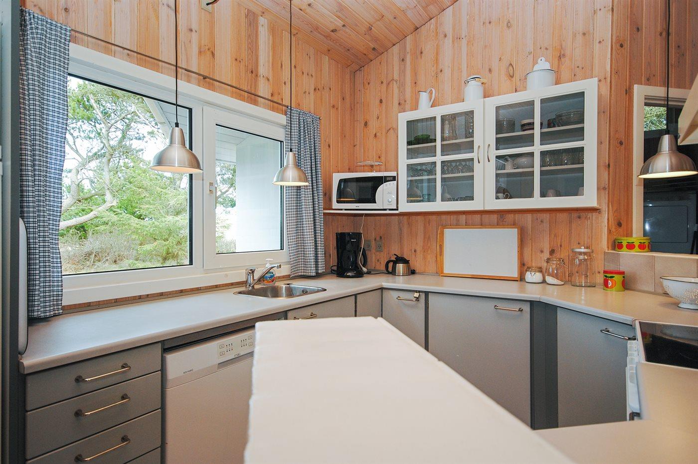 Køkkenet er udstyret med 1 køleskab. Der er 4 keramiske kogeplader, varmluftovn, mikrobølgeovn samt opvaskemaskine.