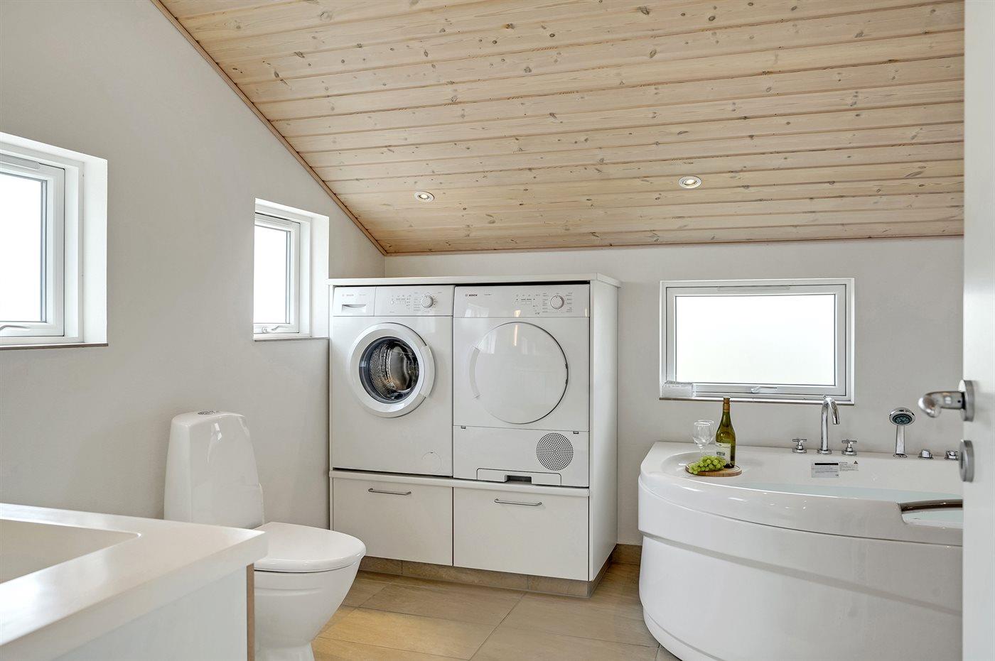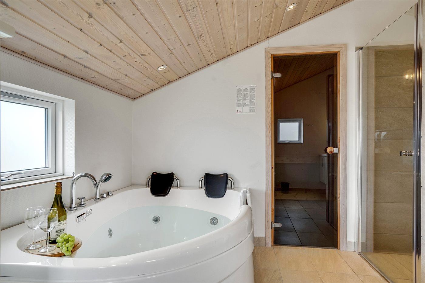 Der er 2 badeværelser med bruseniche og 2 toiletter. Der er gulvvarme på 2 badeværelser. I saunaen er der mulighed for afslapning.