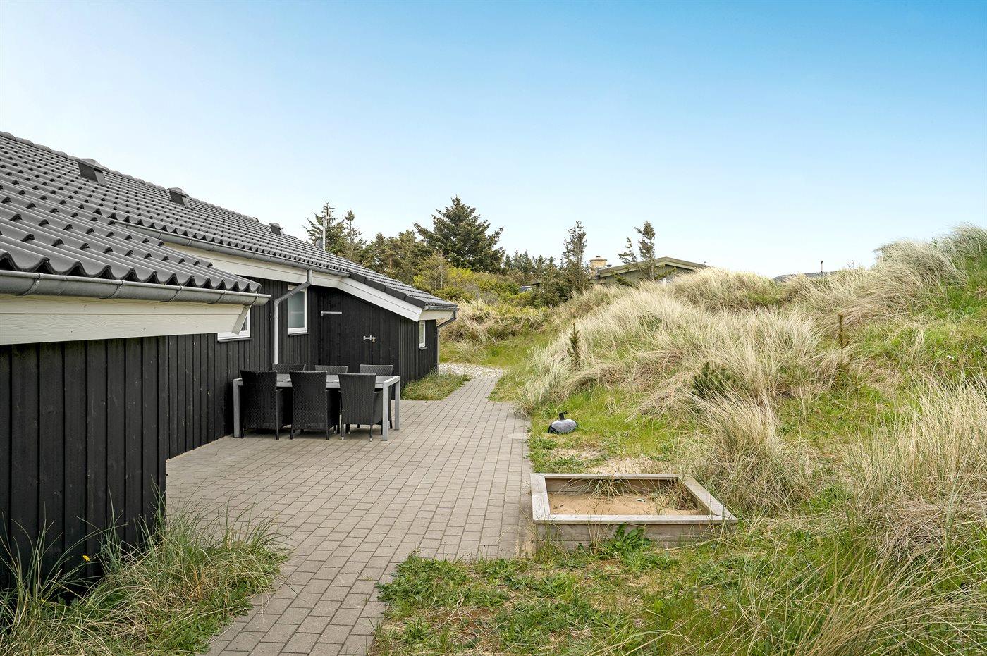 Ferieboligen er beliggende på en 1600 m² stor klitgrund. Der er 400 m til havet. Nærmeste forretning er beliggende i en afstand af 200 m. Til ferieboligen hører 53 m² terrasseareal. Desuden er der 10 m² overdækket terrasse. Sandkasse. Parkering ved ferieboligen.