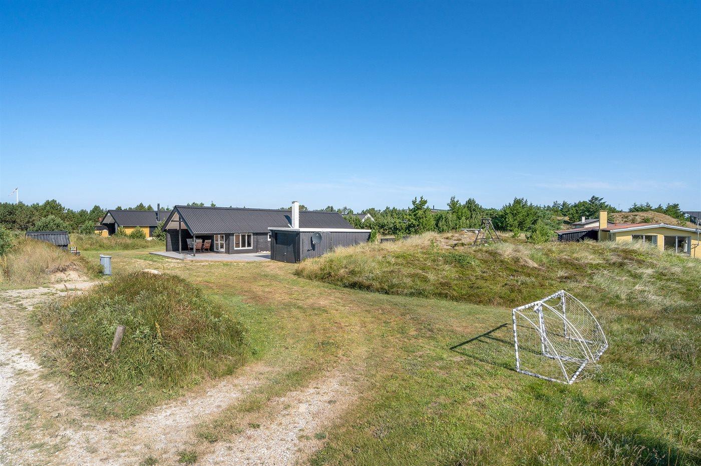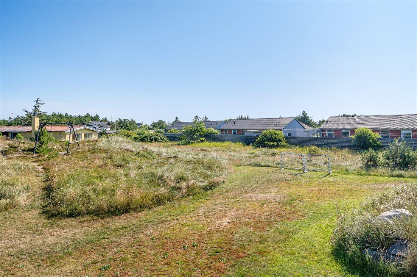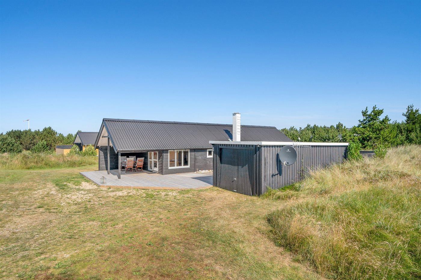 Ferieboligen er beliggende på en 1400 m² stor naturgrund. Der er 700 m til havet. Nærmeste forretning er beliggende i en afstand af 600 m. Til ferieboligen hører 42 m² terrasseareal. Desuden er der 15 m² overdækket terrasse. Gynge. Sandkasse. Grill til rådighed. Parkering ved ferieboligen.