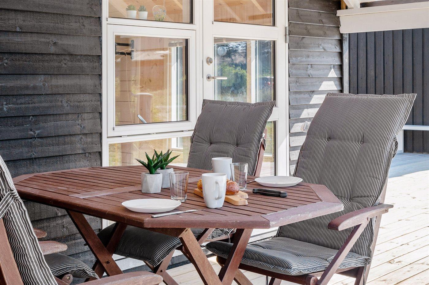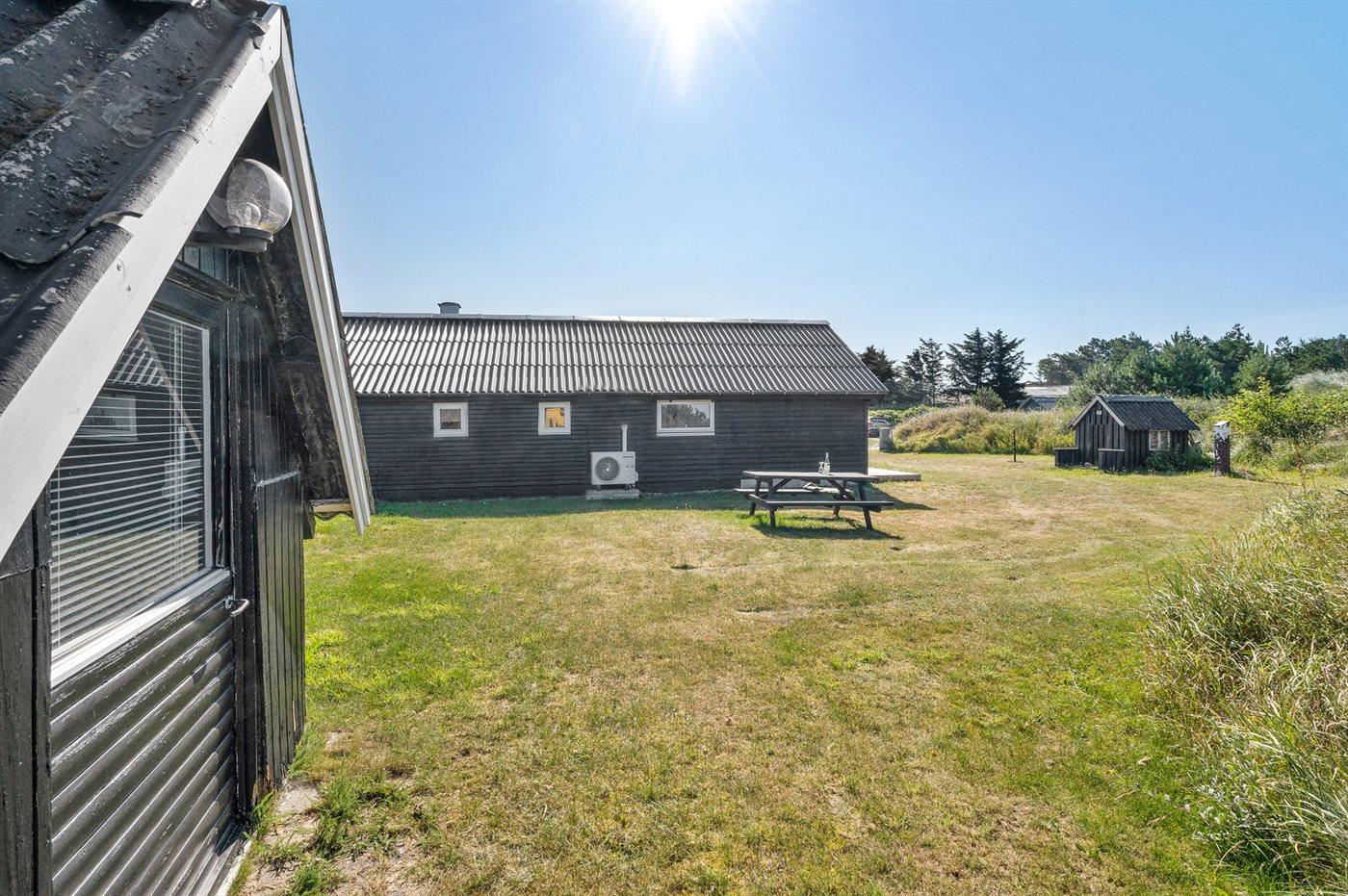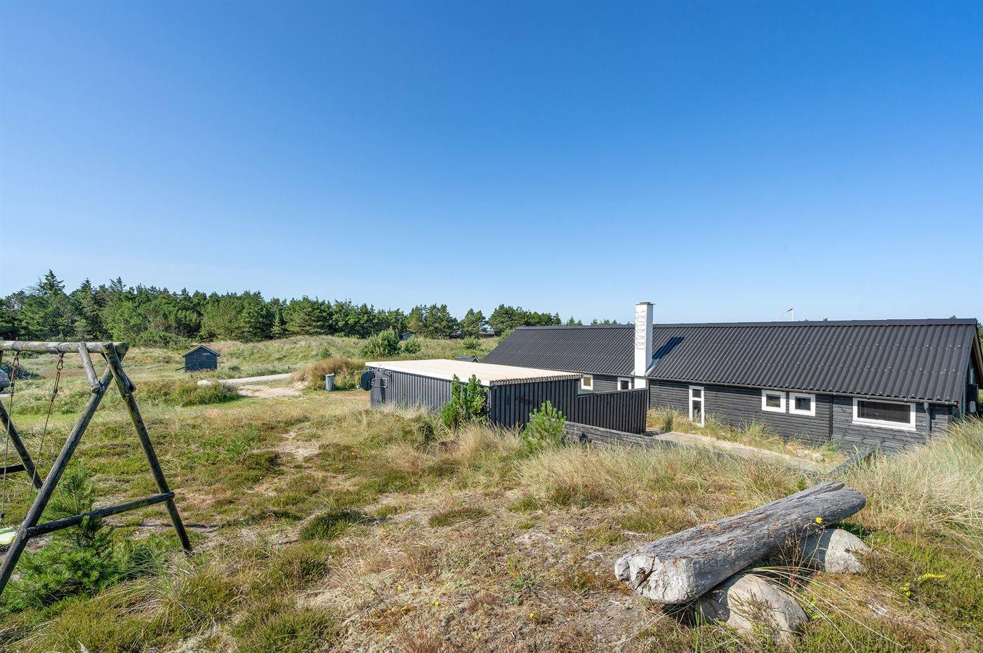 Ferieboligen er beliggende på en 1400 m² stor naturgrund. Der er 700 m til havet. Nærmeste forretning er beliggende i en afstand af 600 m. Til ferieboligen hører 42 m² terrasseareal. Desuden er der 15 m² overdækket terrasse. Gynge. Sandkasse. Grill til rådighed. Parkering ved ferieboligen.
