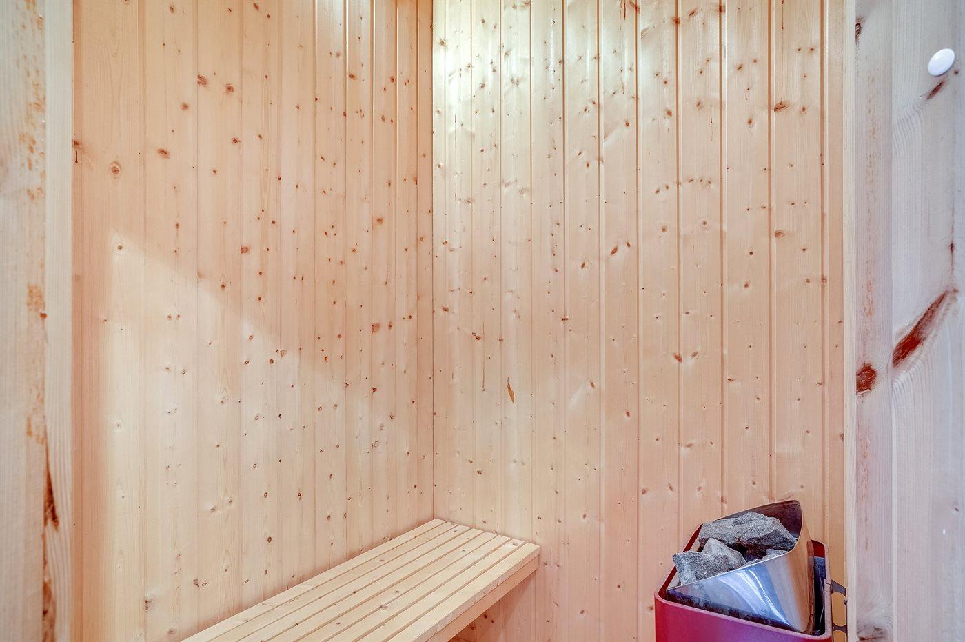 Der er 1 badeværelse med bruseniche og 1 toilet.. Der er gulvvarme på 1 badeværelse. I saunaen er der mulighed for afslapning.
