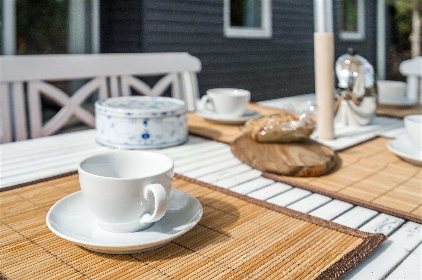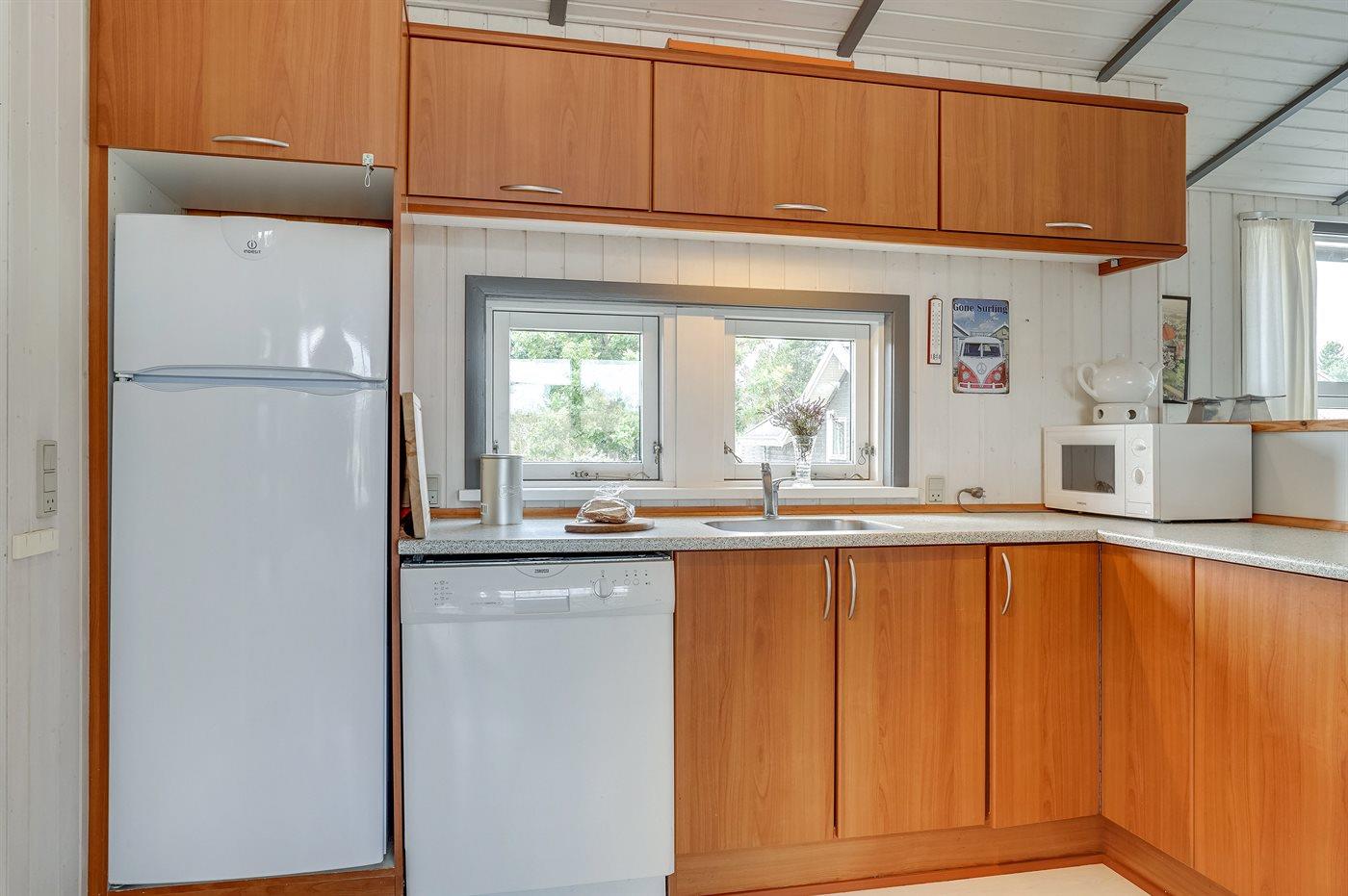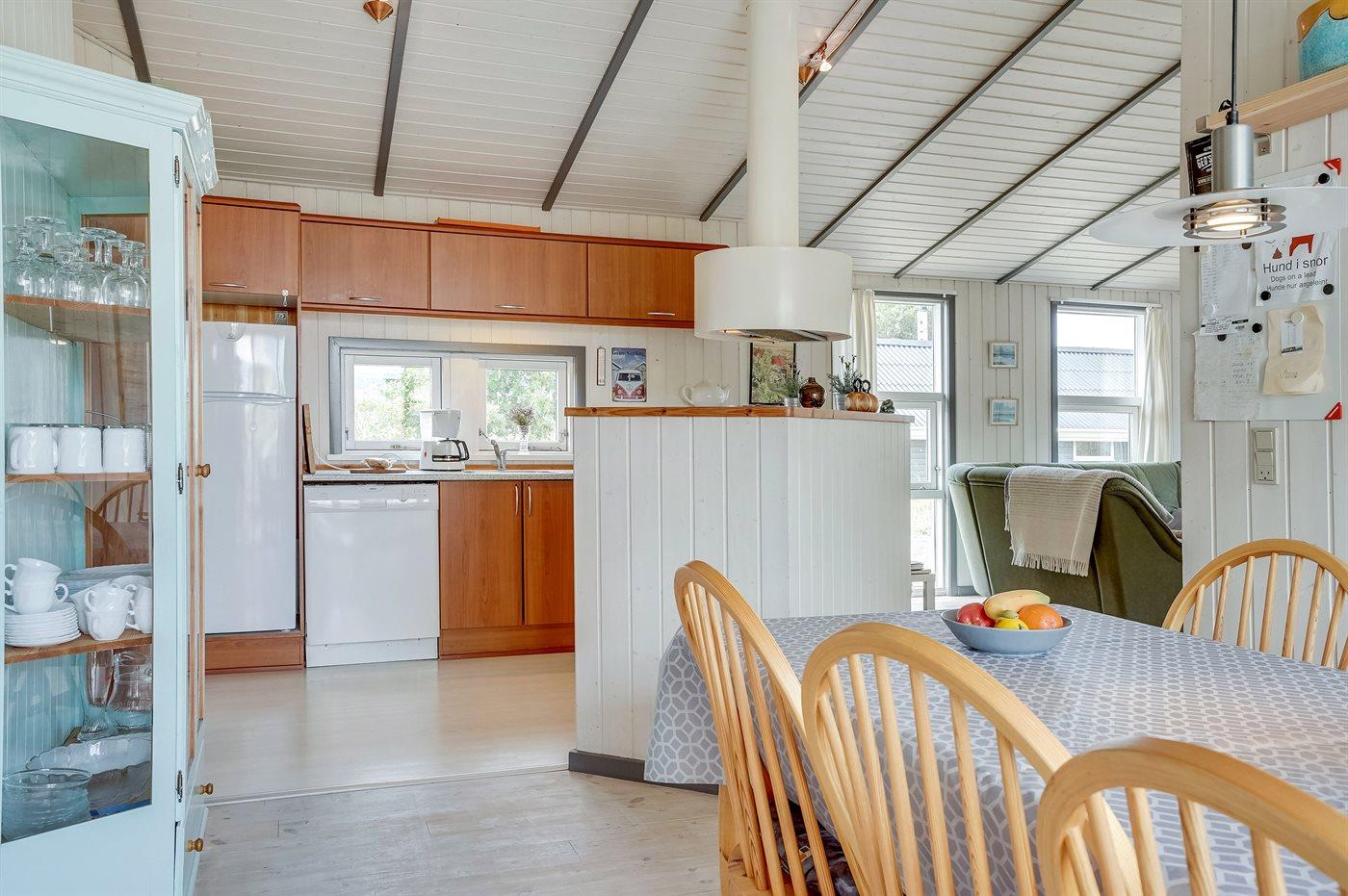 Køkkenet er udstyret med 1 køleskab. Der er 4 keramiske kogeplader, varmluftovn, mikrobølgeovn samt opvaskemaskine.