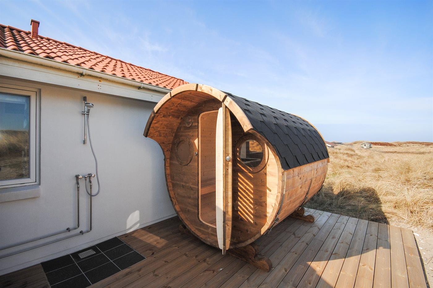 Til huset hører en meget lækker udendørs sauna, hvorfra man kan nyde udsigten over klitterne. Den udendørs bruser er tilgængelig i perioden 1. april til 31. oktober.