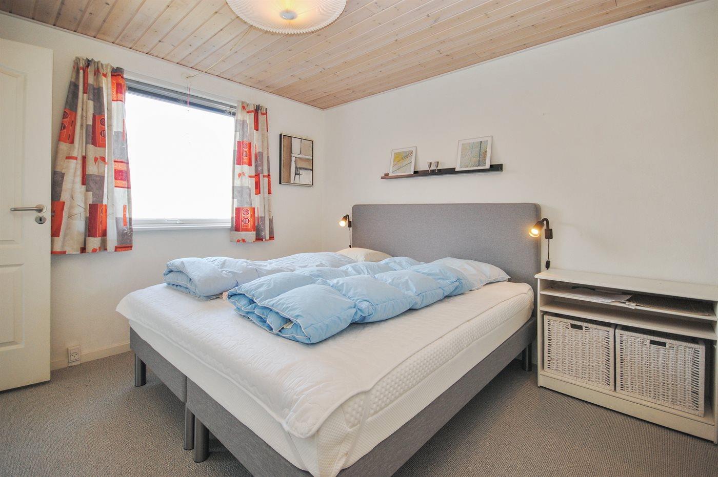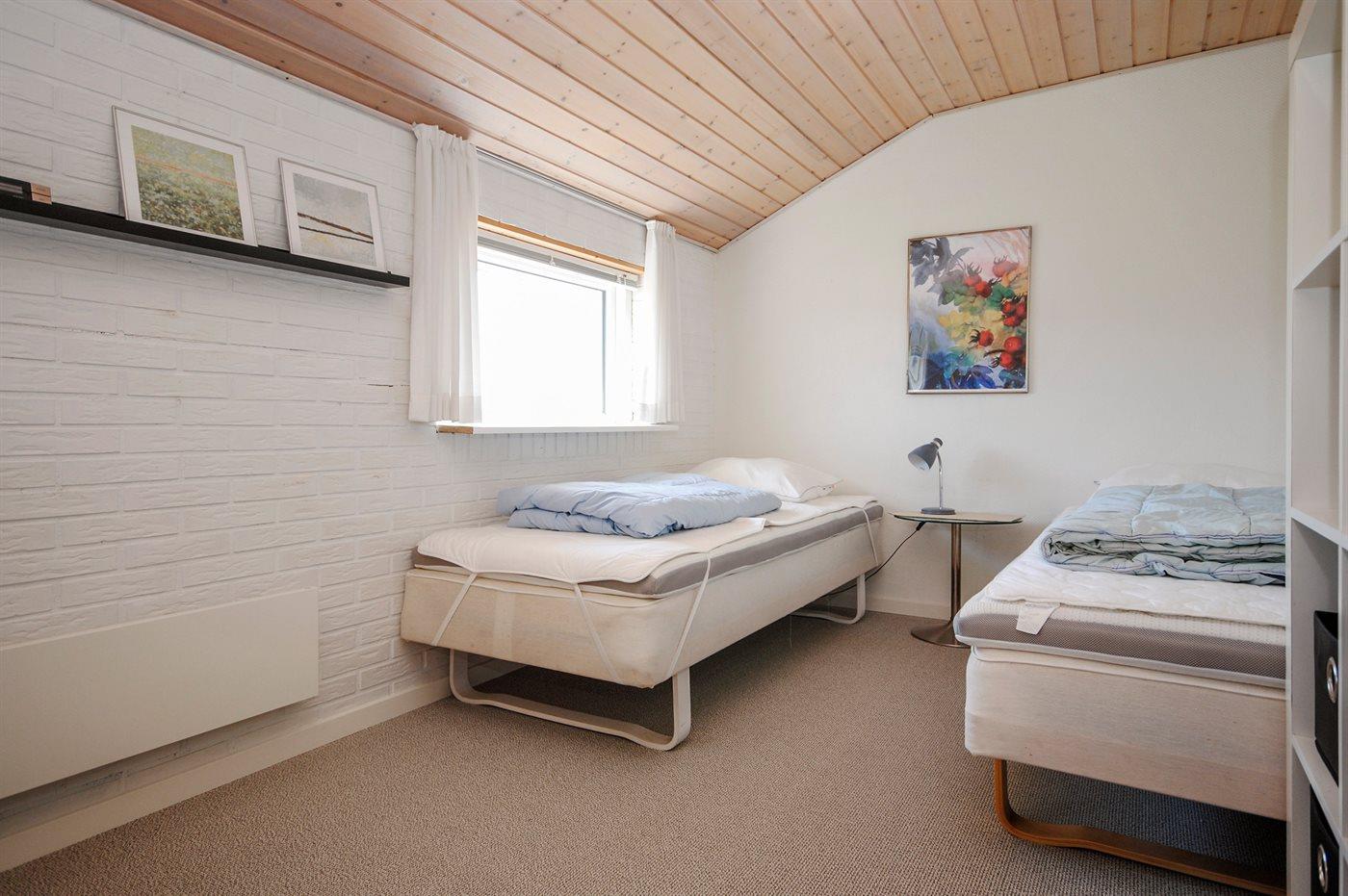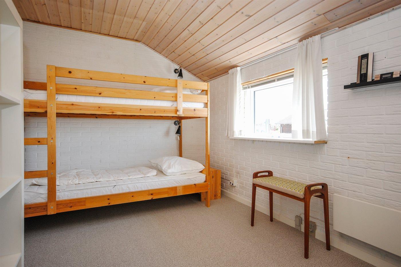 Der er i alt 3 soveværelser. Sovepladserne fordeler sig på: 2 sovepladser i dobbeltseng. 4 sovepladser i enkeltsenge. 2 sovepladser i køjeseng. Derudover er der 1 stk. barneseng.