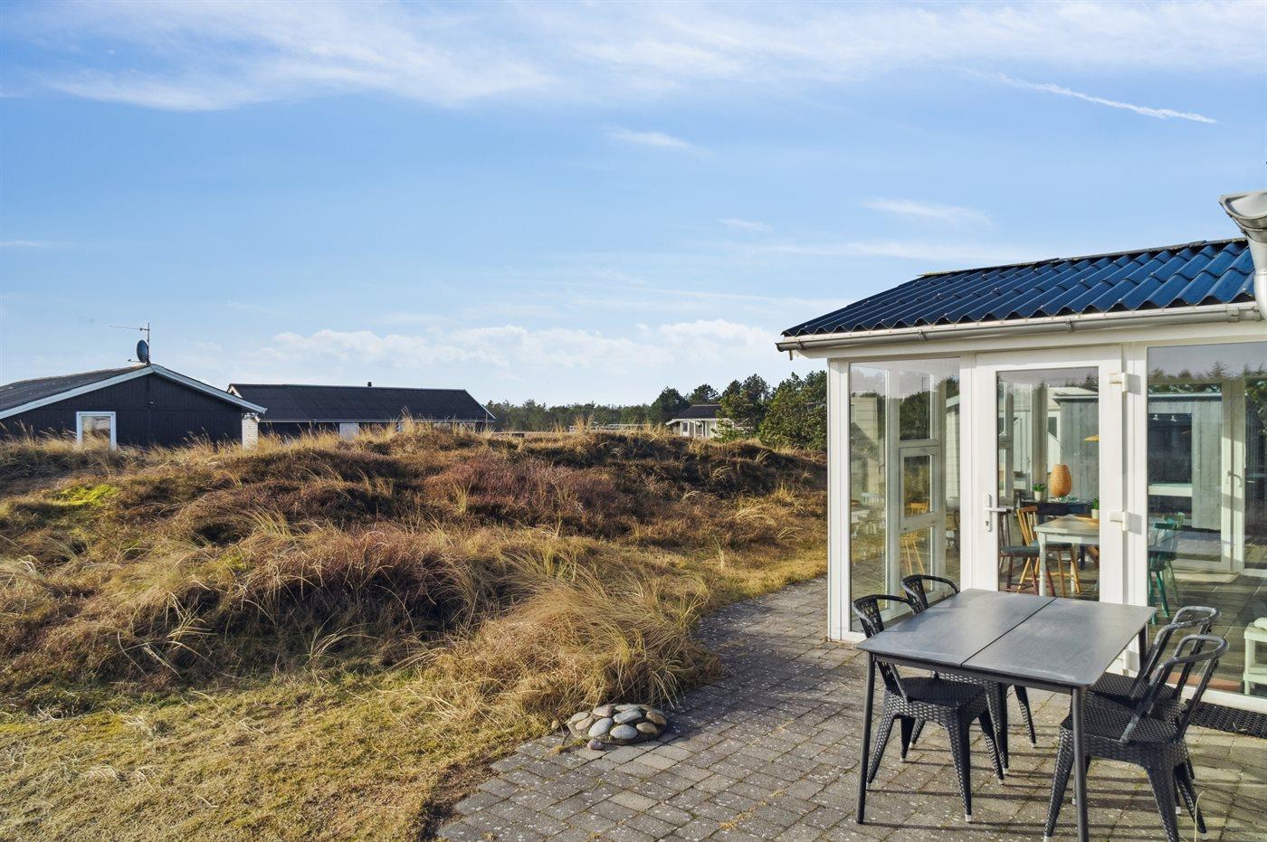 Ferieboligen er beliggende på en 1200 m² stor naturgrund. Der er 800 m til havet. Nærmeste forretning er beliggende i en afstand af 800 m. Til ferieboligen hører 30 m² terrasseareal. Ligeledes er der adgang til udestue. Der er redskabsrum. Shelter. Udendørs bruser. Parkering ved ferieboligen.