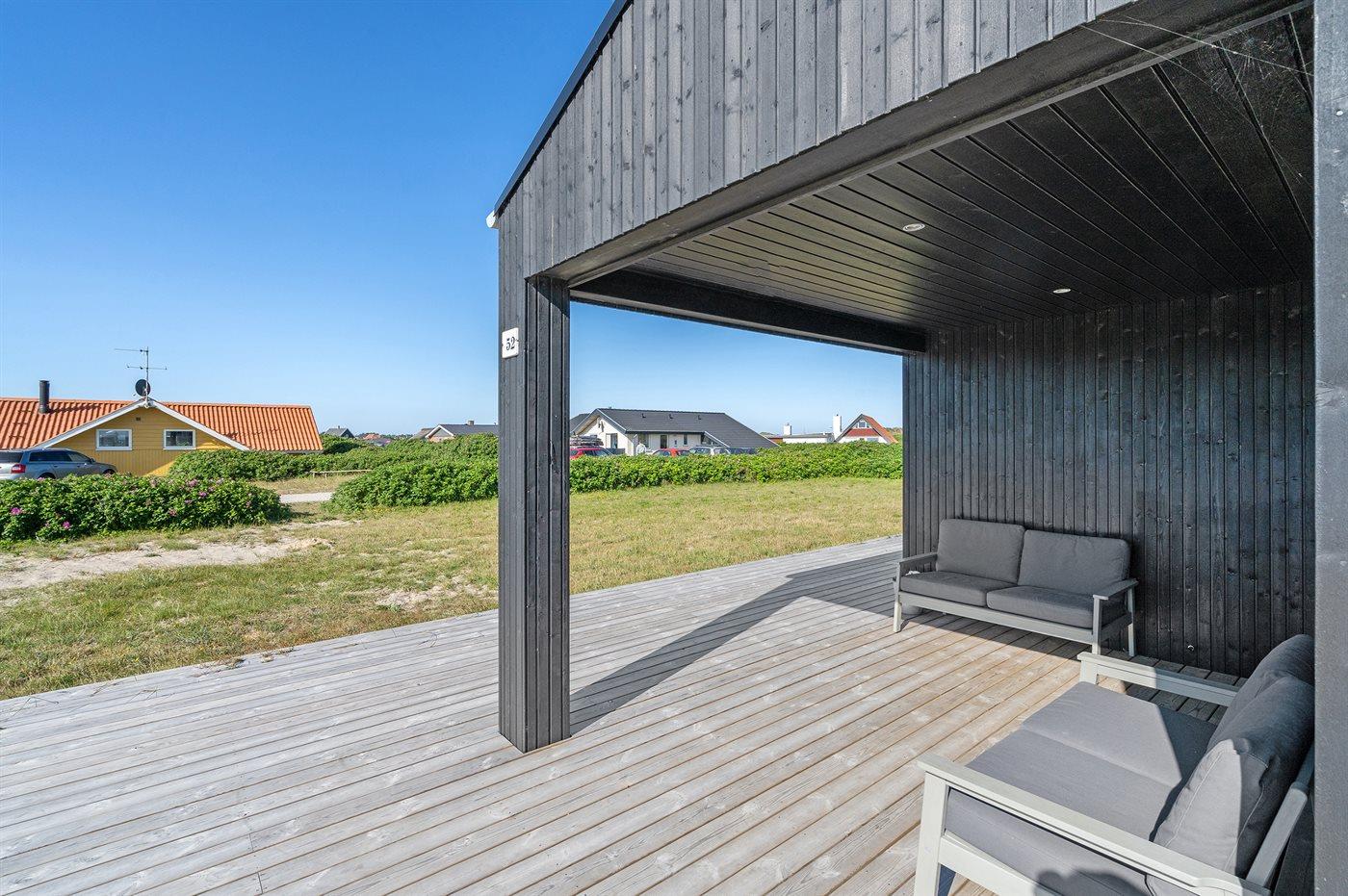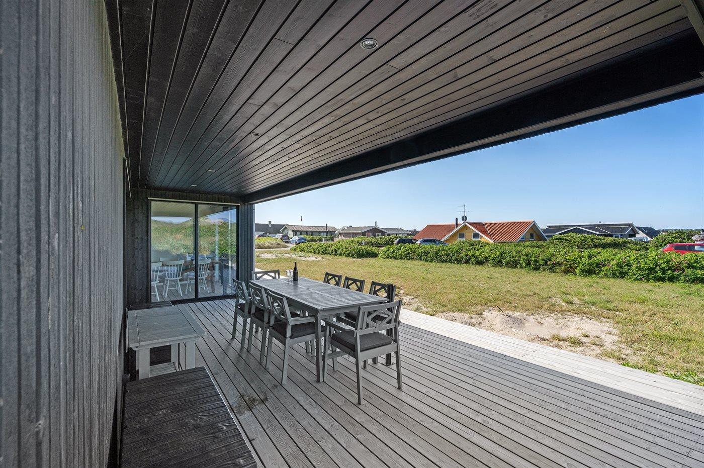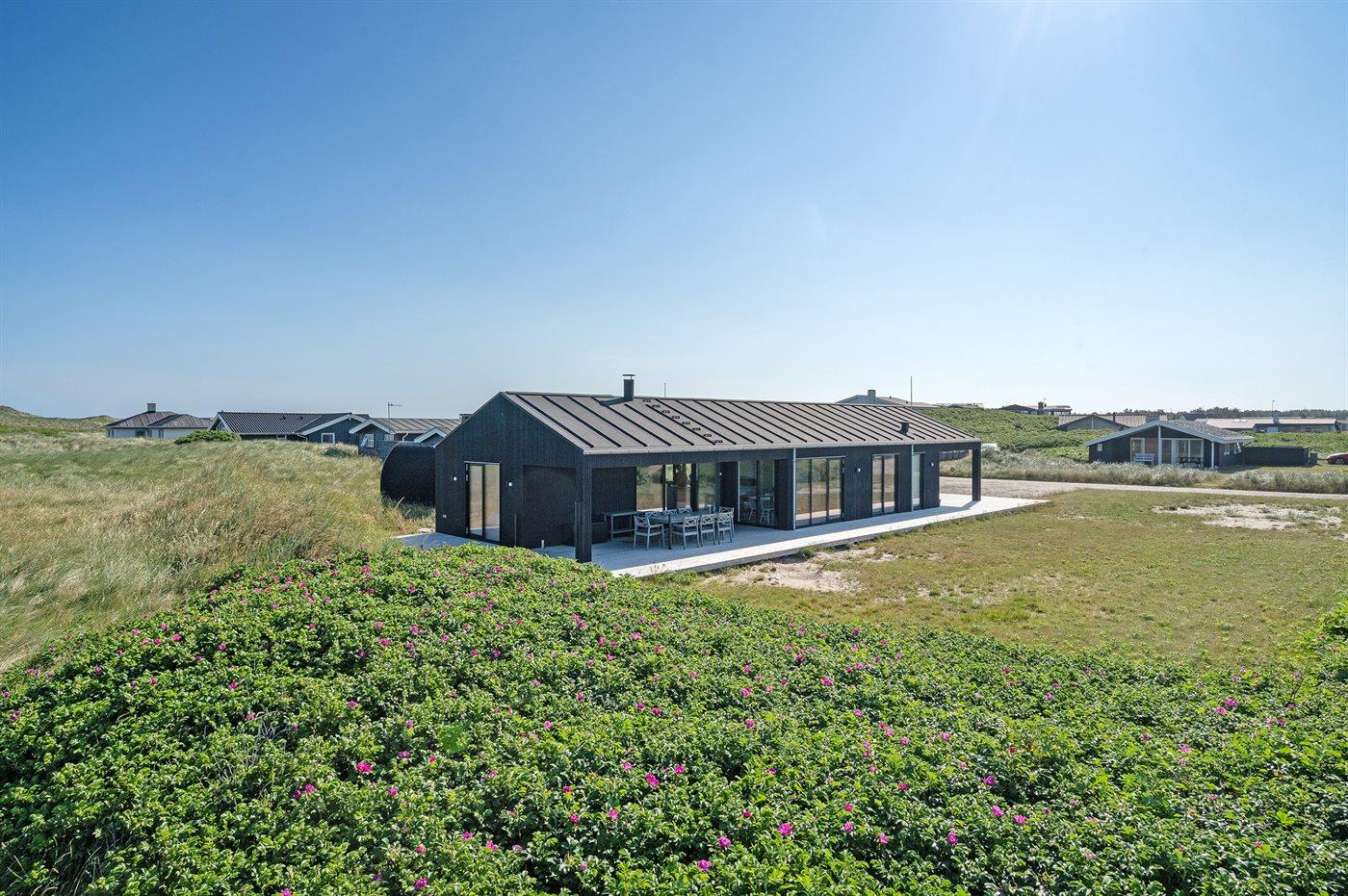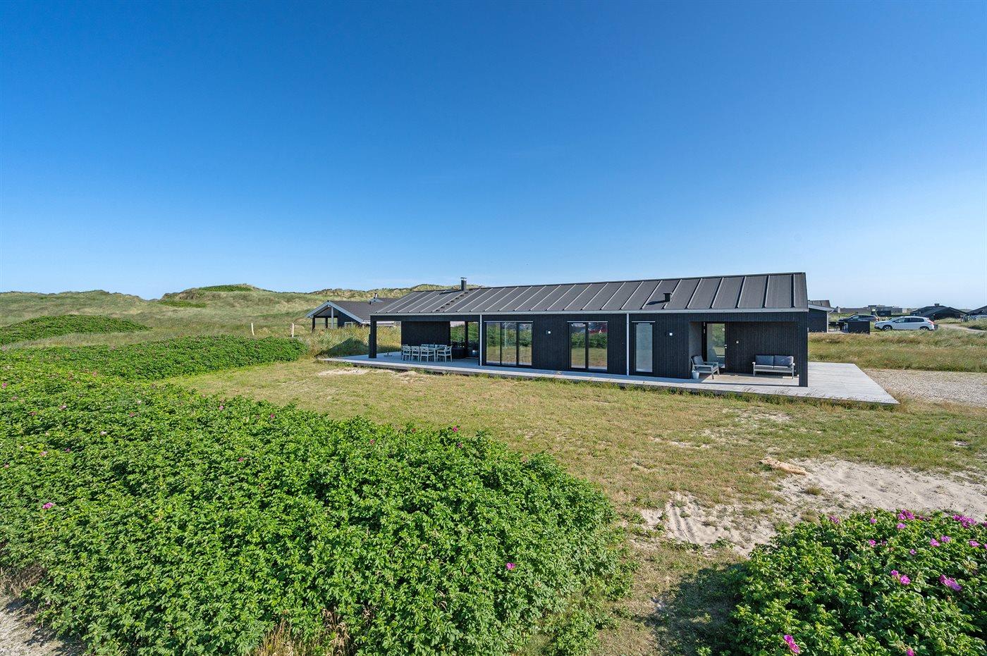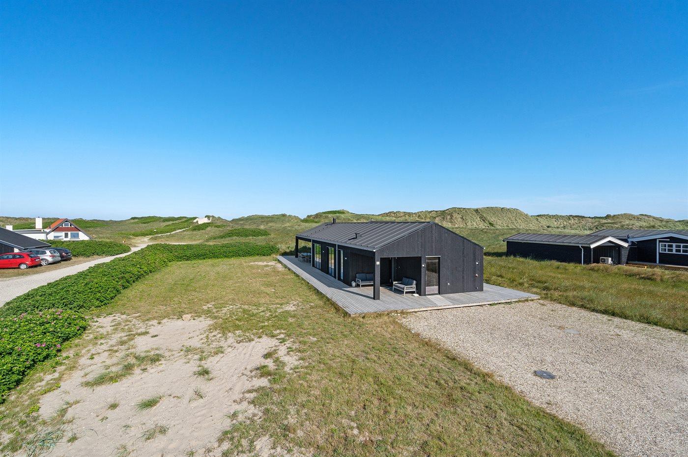 Ferieboligen er beliggende på en 1050 m² stor klitgrund. Der er 50 m til havet. Nærmeste forretning er beliggende i en afstand af 500 m. Der er en golfbane i en afstand af 4000 m. Til ferieboligen hører 122 m² terrasseareal. Desuden er der 30 m² overdækket terrasse. Der er redskabsrum. Udendørs sauna. Parkering ved ferieboligen.