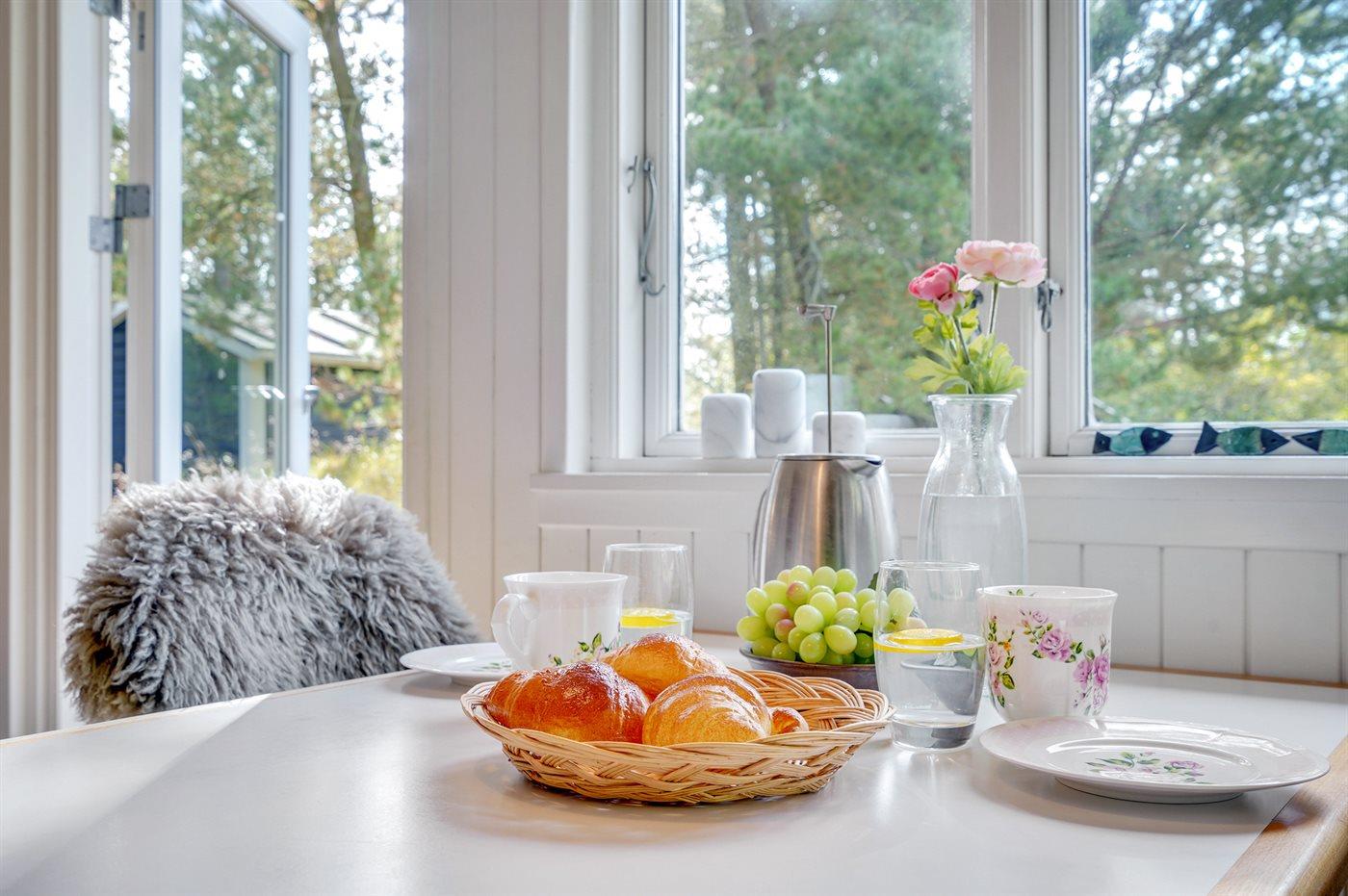Køkkenet er udstyret med 1 køleskab. Der er 4 keramiske kogeplader, varmluftovn samt opvaskemaskine.