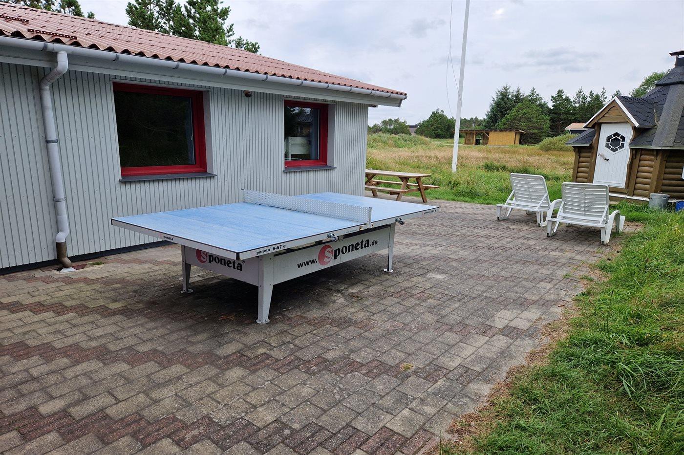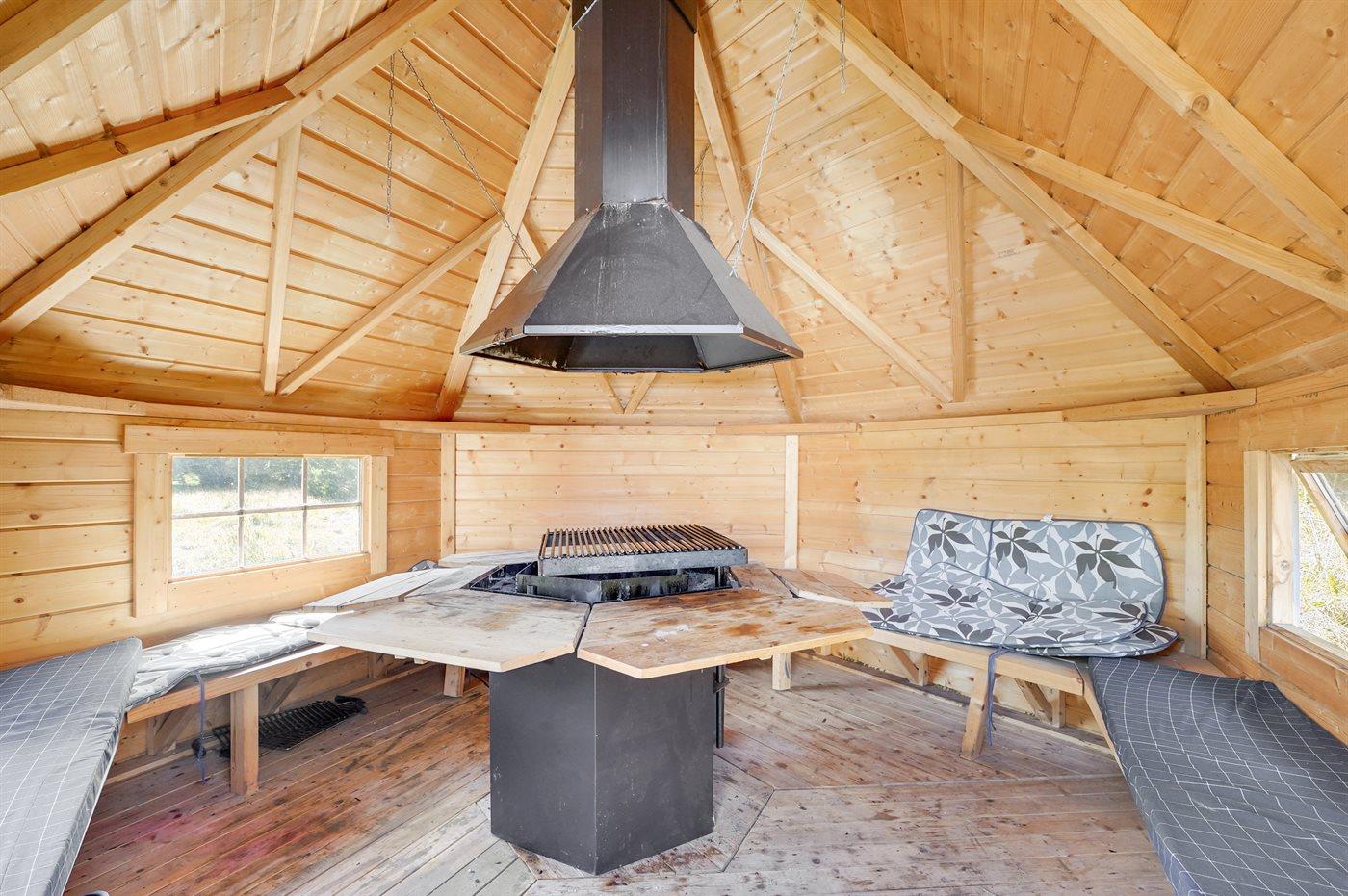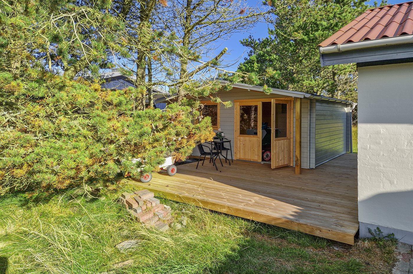 Ferieboligen er beliggende på en 1300 m² stor naturgrund. Der er 900 m til havet. Nærmeste forretning er beliggende i en afstand af 900 m. Til ferieboligen hører åbent og overdækket terrasseareal. Sandkasse. Bålsted. Grill til rådighed. Parkering ved ferieboligen.