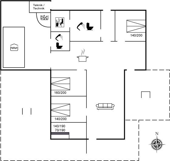 Sommerhuset egner sig til 10 personer samt 1 barn op til 3 år. Ferieboligen er på 150 m² og er bygget i 1985. I 2021 gennemgik ferieboligen en renovering. Det er tilladt at medbringe 2 husdyr. Ferieboligen er udstyret med 1 energivenlig luft til luft varmepumpe og 1 energivenlig luft til vand varmepumpe. Der er gulvvarme i alle klinkegulve. Ferieboligen har vaskemaskine. Tørretumbler. Frysekapacitet på 60 liter. Der er desuden brændeovn. Til de små er der 1 stk. barnestol.