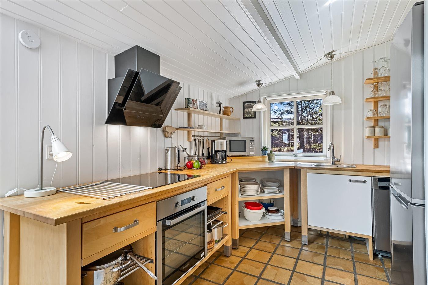 Køkkenet er udstyret med 1 køleskab. Der er 4 induktionskogeplader, varmluftovn, mikrobølgeovn samt opvaskemaskine.