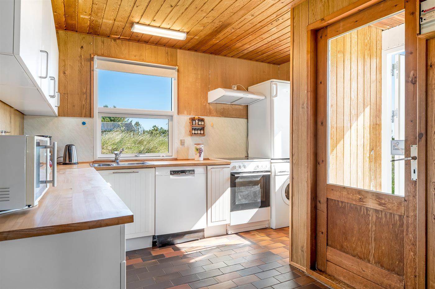 Køkkenet er udstyret med 1 køleskab. Der er 4 elkogeplader, varmluftovn, mikrobølgeovn samt opvaskemaskine.