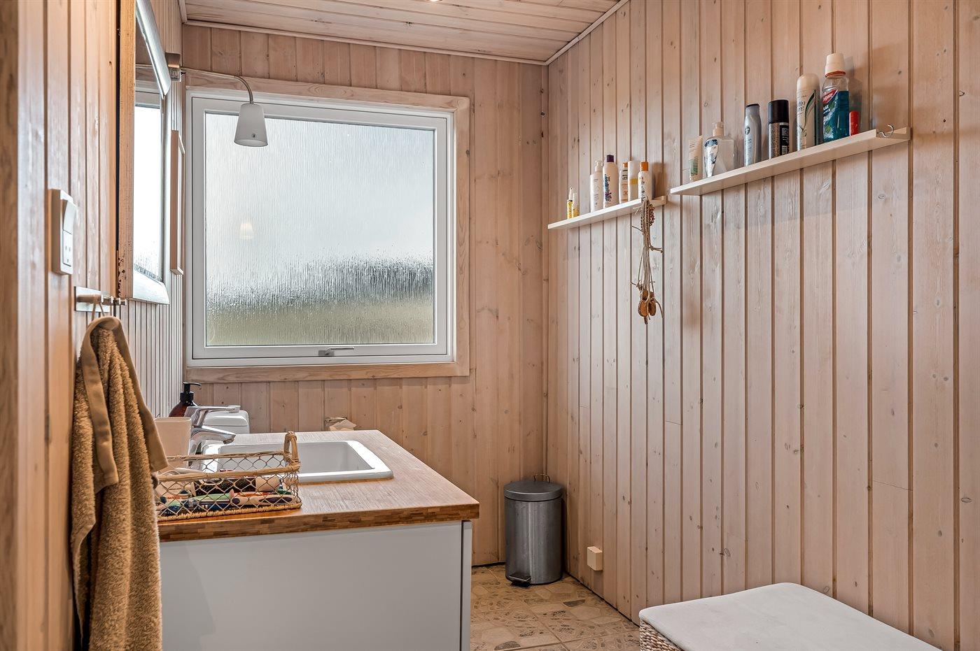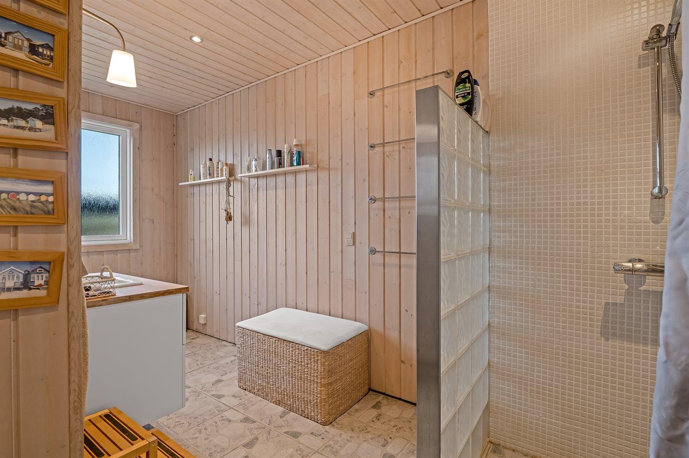 Til huset hører en dejlig og til dels overdækket terrasse, hvor der findes vildmarksbar og sauna.