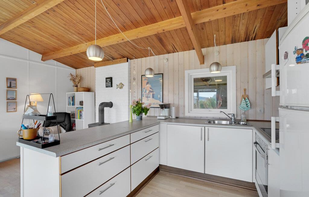 Dette indbydende hus byder jer velkommen kun få skridt fra stranden og har en smuk udsigt over omgivelserne. Med lyse rum og flot dagslys er det det ideelle sted for en afslappende pause med dejlige dage ved havet og udflugter i området. Hyg jer sammen i sofaen, læs i ro og mag, eller nyd den skønne udsigt, mens I spiser sammen eller skaber en hyggelig stemning med ild i brændeovnen.