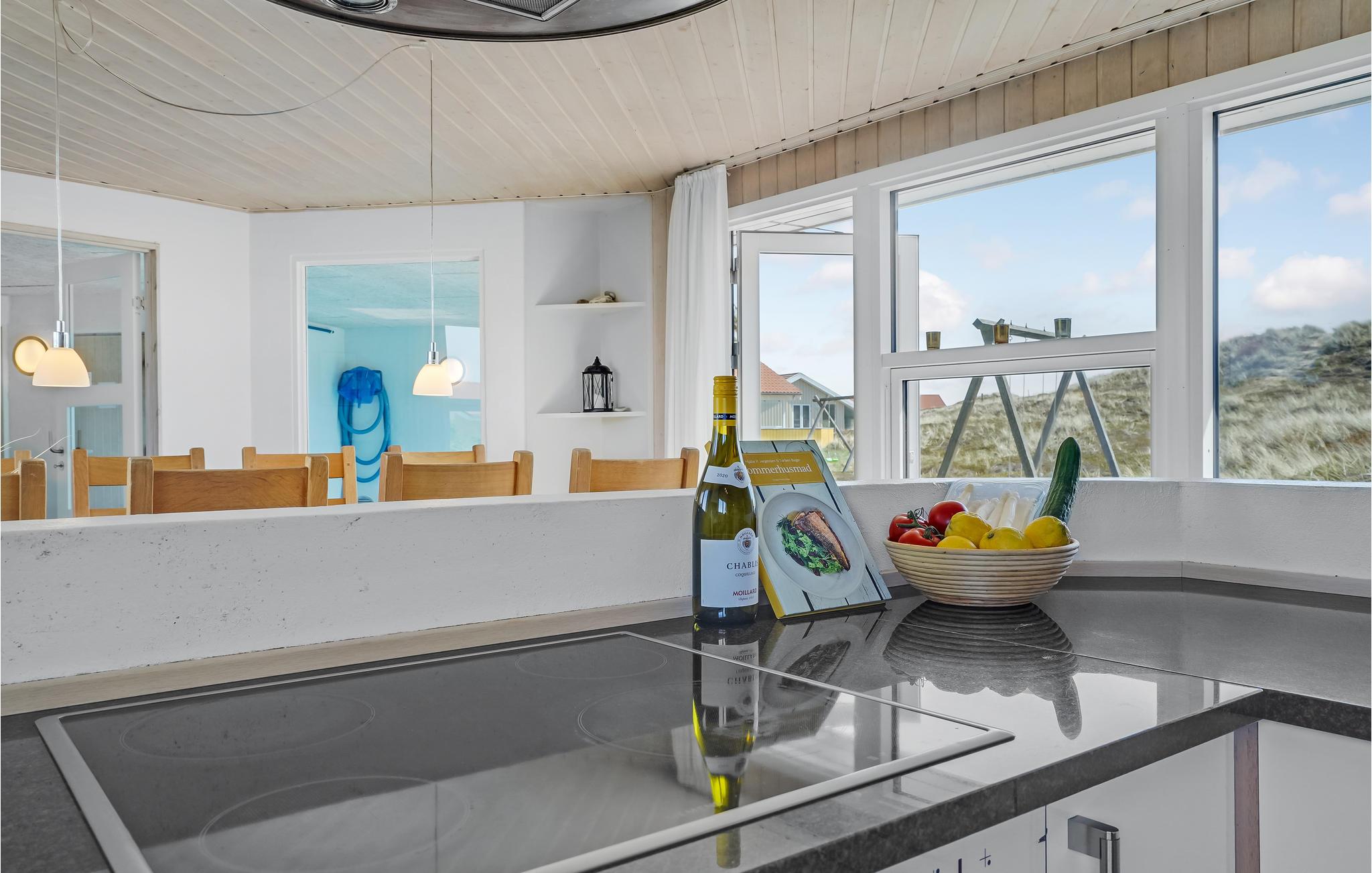 Når mørket falder på, sørger brændeovnen midt i huset for varme og hygge. Åbner I vinduerne på en stille aften, er det muligt at høre havets beroligende brusen fra huset. Huset er godt og moderne udstyret med bl.a. hurtigt internet og chromecast og danner de perfekte rammer om en ferie for op til 2 familier.