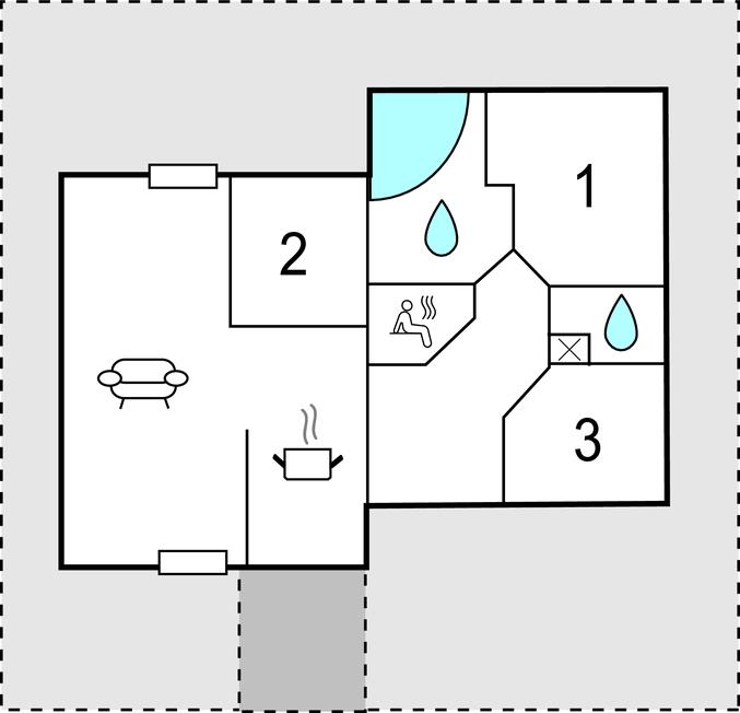 Soveværelse 12m2 (nr. 1) - 2 Sovepladser. (Dobbeltseng(e)). 1 Soveplads. (Sofa, madras eller lignende).