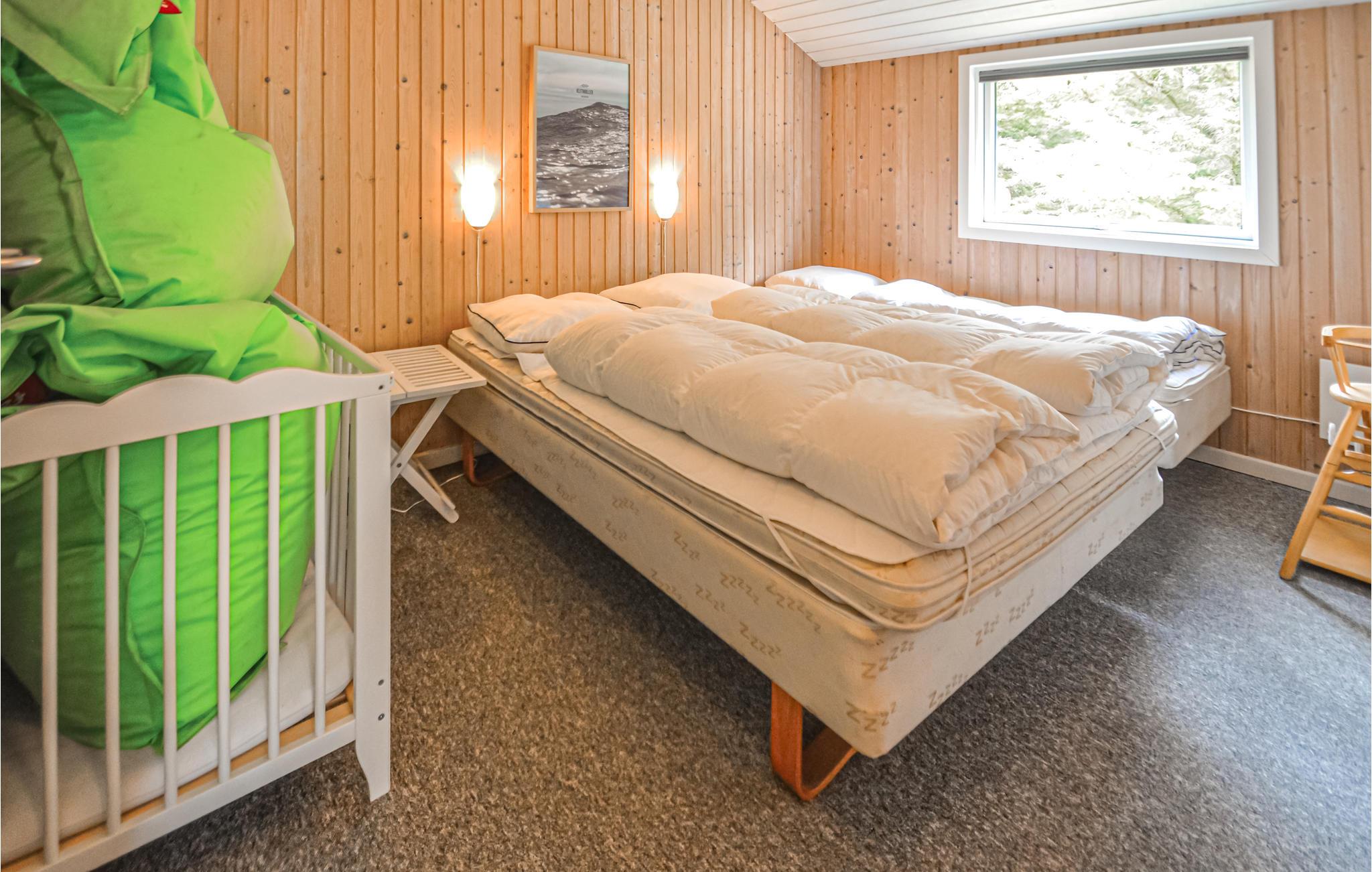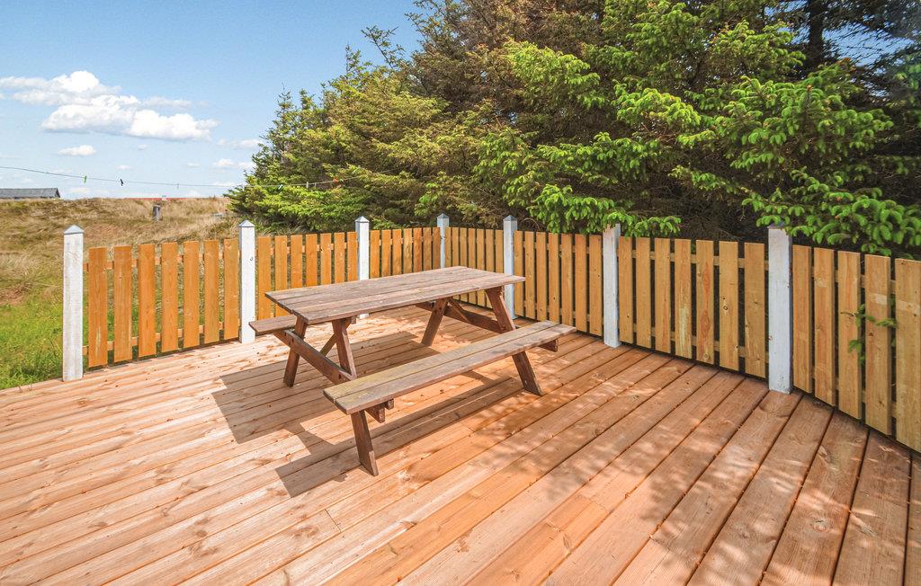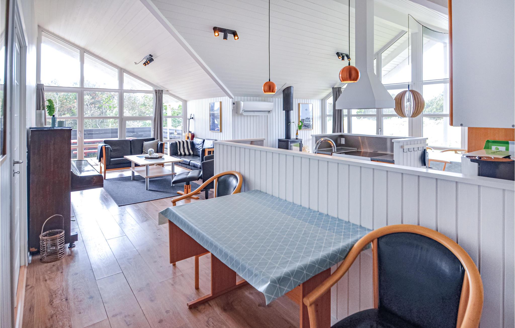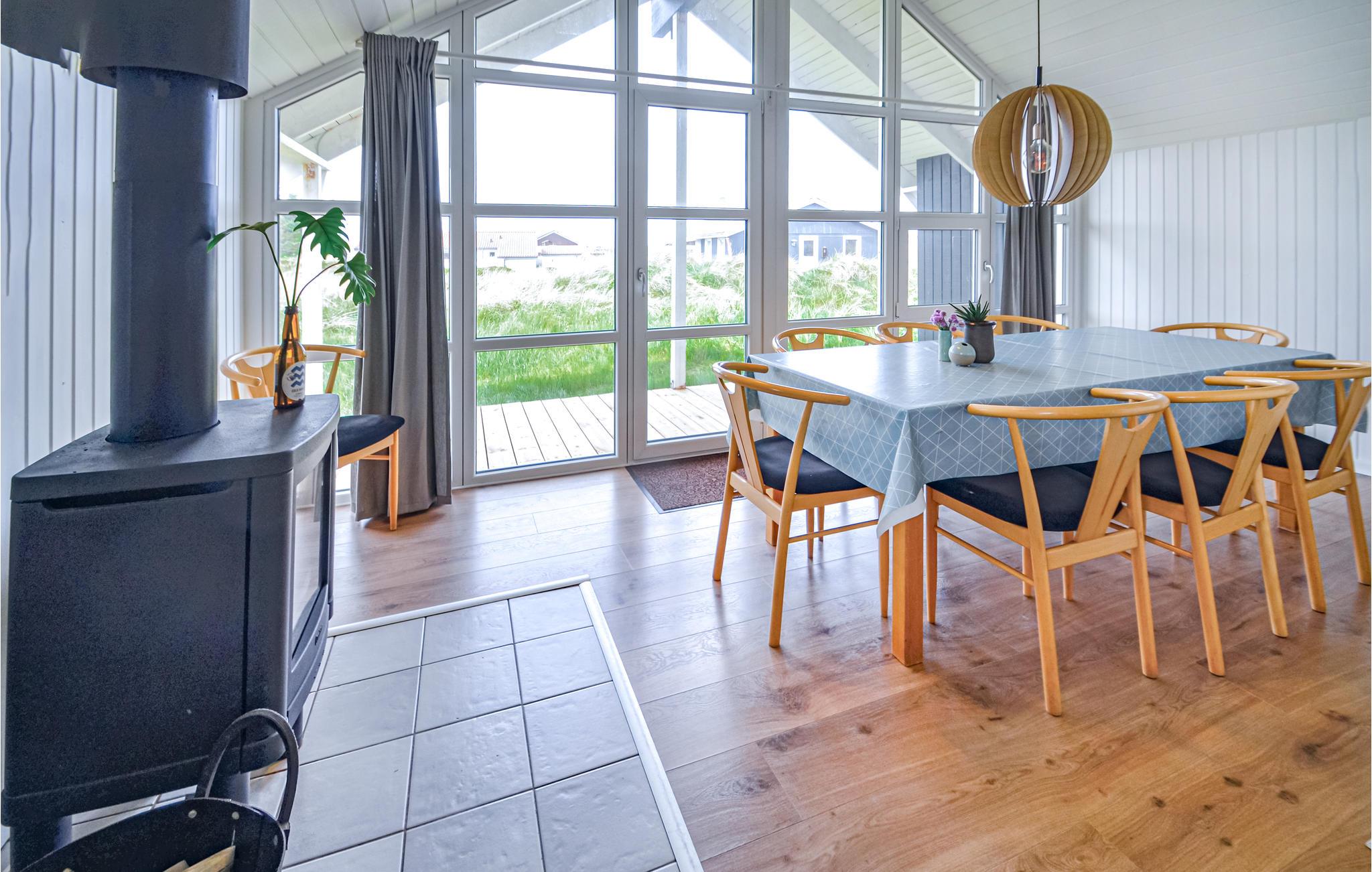 Dette rummelige feriehus af træ, har plads til hele ti personer, fordelt på fem soveværelser og med to moderne og indbydende badeværelser. Her har I også jeres helt egen indendørs swimmingpool, så I kan bade uanset vejr og årstid. Efter en frisk gåtur langs havet, er det dejligt at hoppe en tur i saunaen, og blive varmet op igen, eller sidde i whirlpoolen og blive masseret af tusinder af luftbobler. Vælg mellem flere terrasser, enten åbne eller overdækkede til det gode ferieliv udendørs. Klitmøller ligger her hvor storslået natur, hede, skov, frisk luft og masser af plads til alle sider mødes med det brusende Vesterhav, klitter og brede, hvide sandstrande. Intet under at stadig flere feriegæster opdager de ubegrænsede muligheder, der gemmer sig her, hvad enten man søger aktiviteter som f.eks. windsurfing, tennis, minigolf eller golf, eller de naturoplevelser, området uanset årstiden er så rig på.