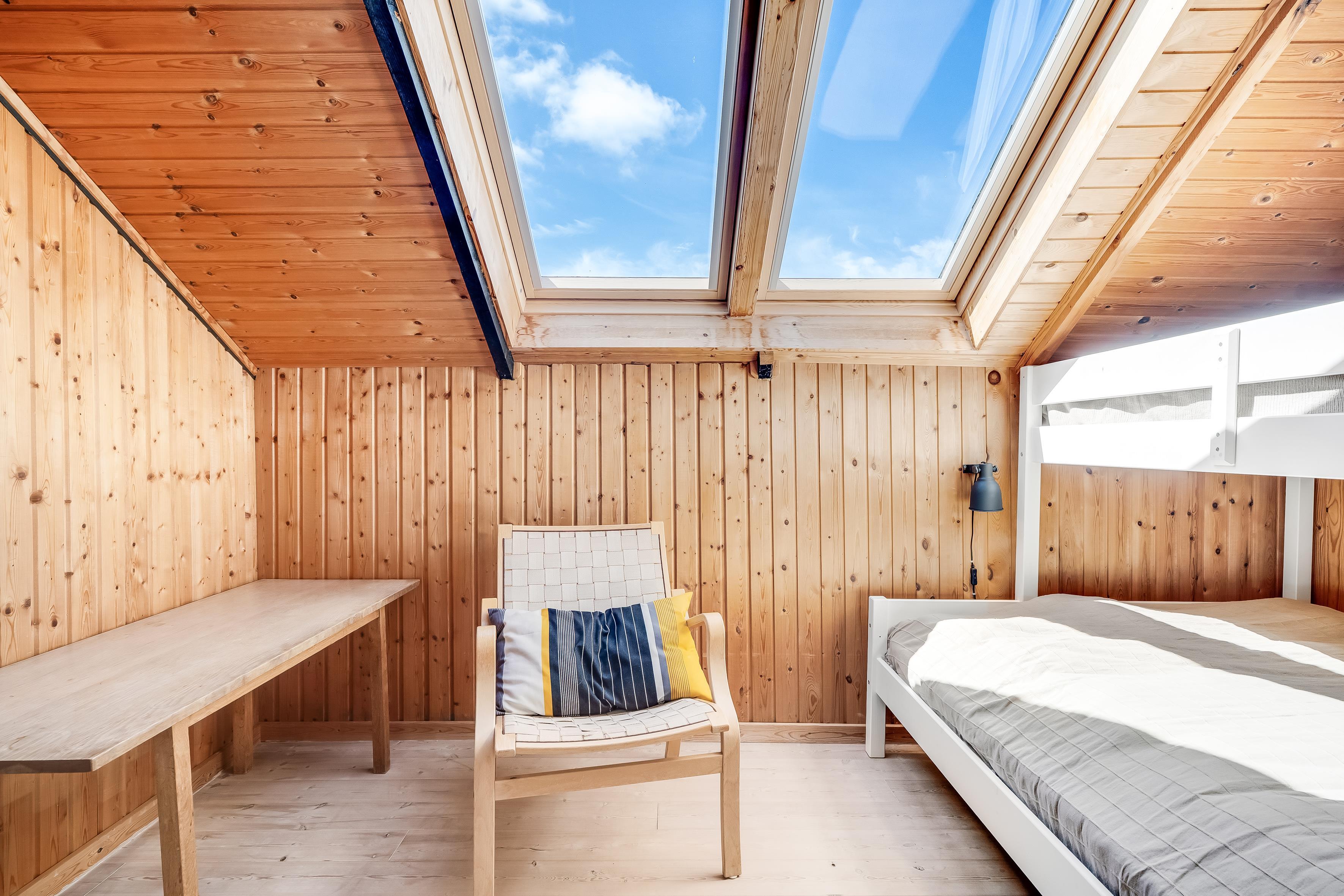 Det moderne badeværelse er udstyret med gulvvarme, bruser og toilet, og den praktiske vaskemaskine, gør det nemt at holde tøjet friskt under hele opholdet. I stuen finder I en hyggelig brændeovn, der skaber en varm og indbydende atmosfære på køligere aftener, samt en energibesparende varmepumpe, der også kan fungere som aircondition, sikre et behageligt indeklima.