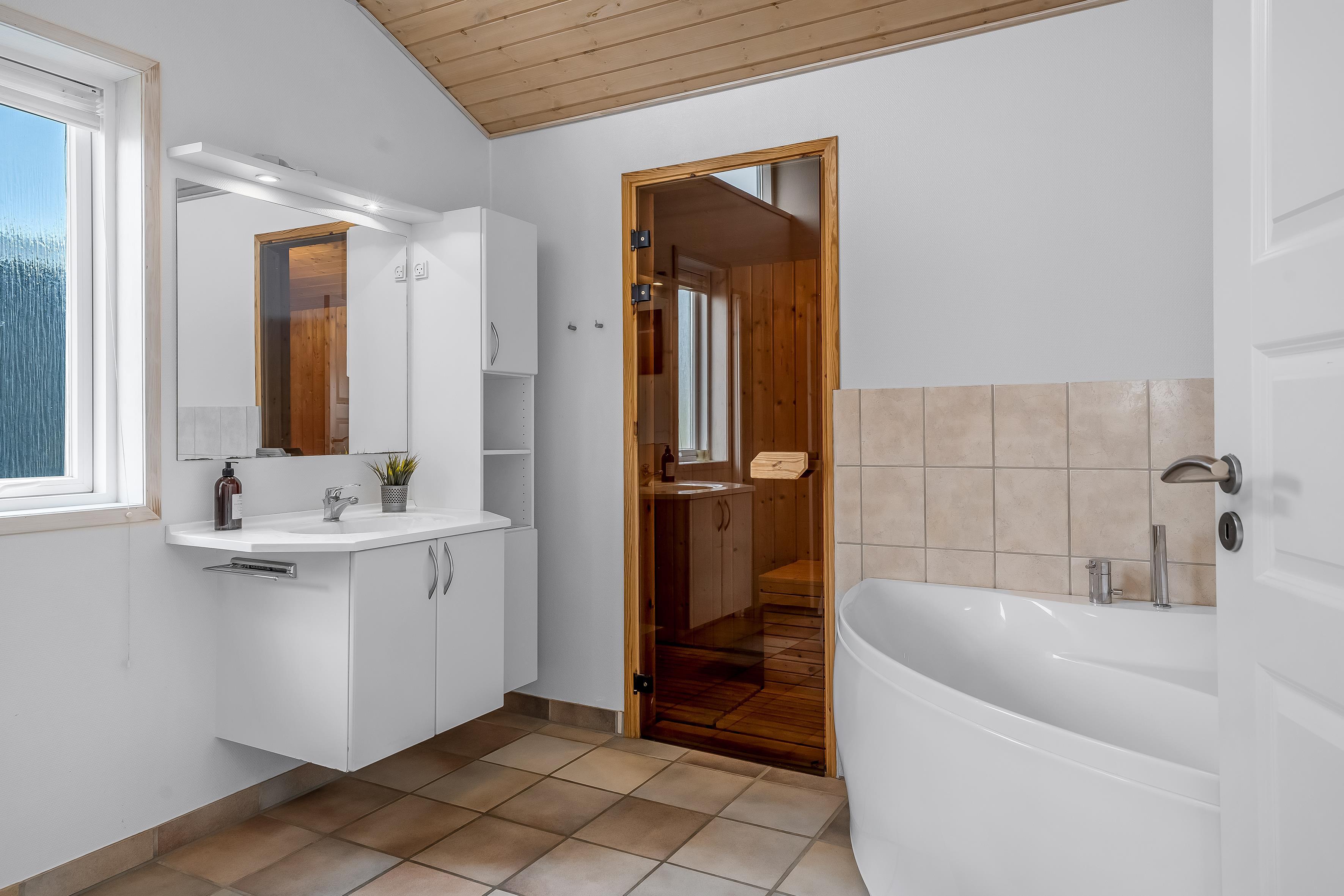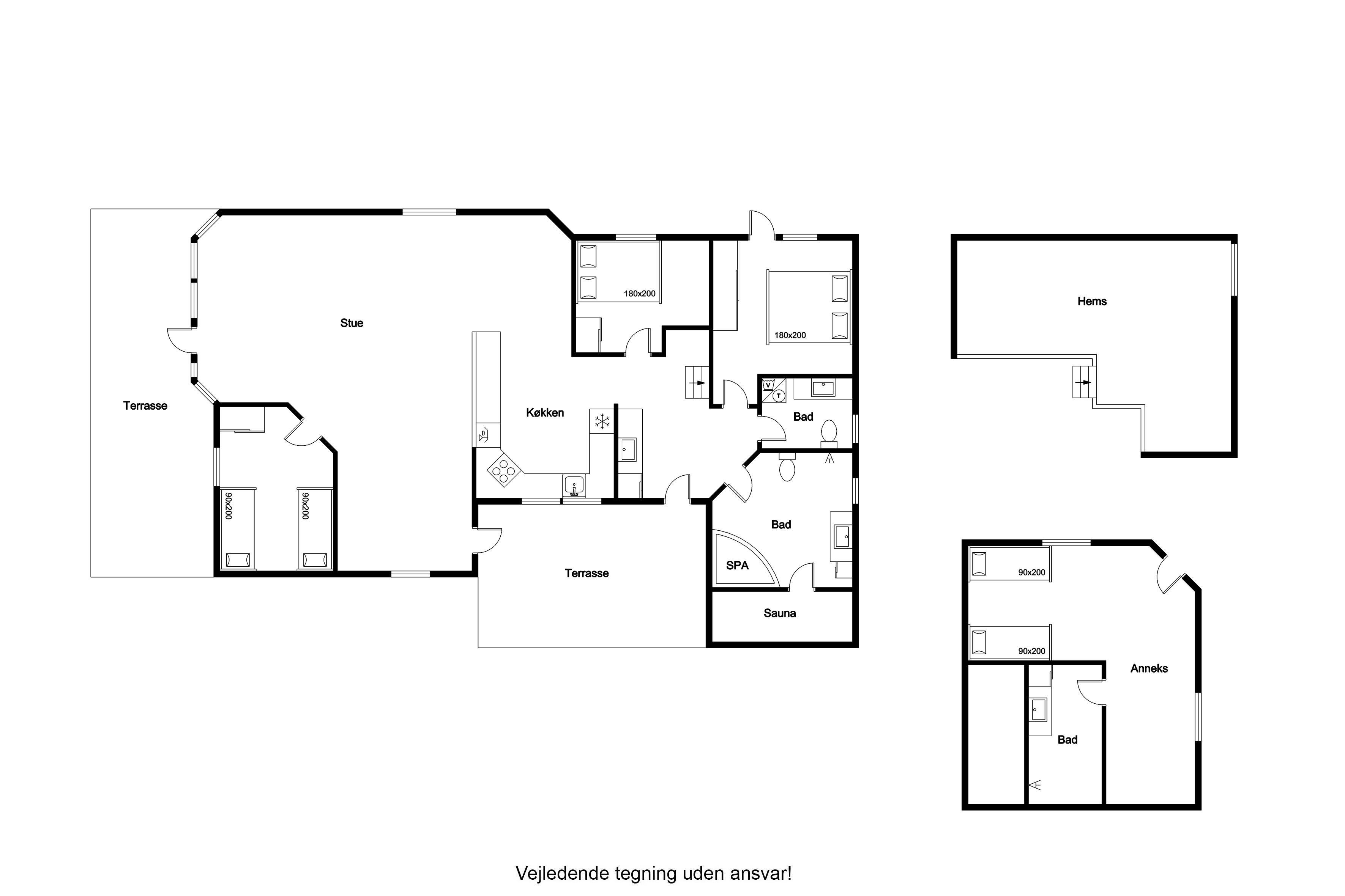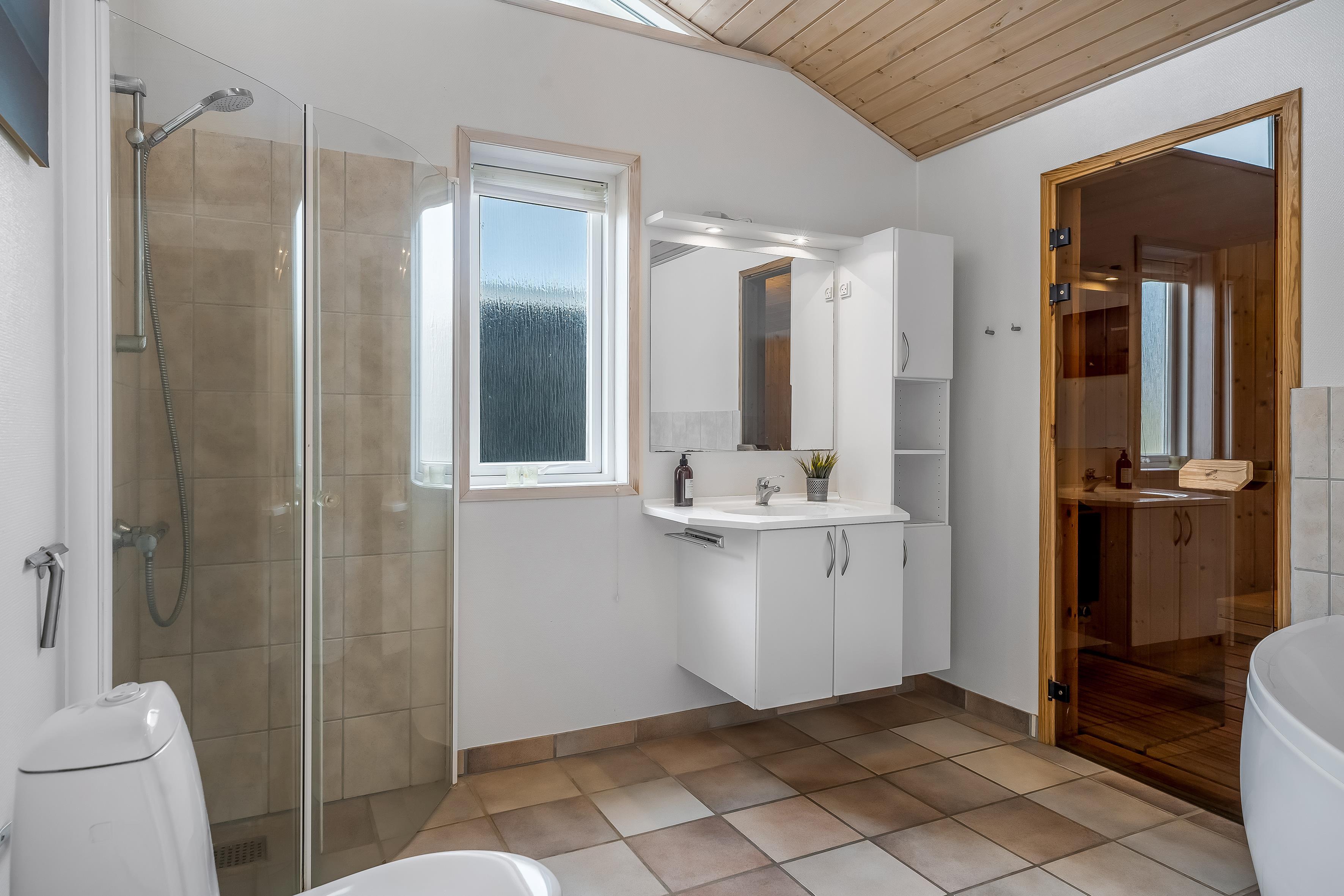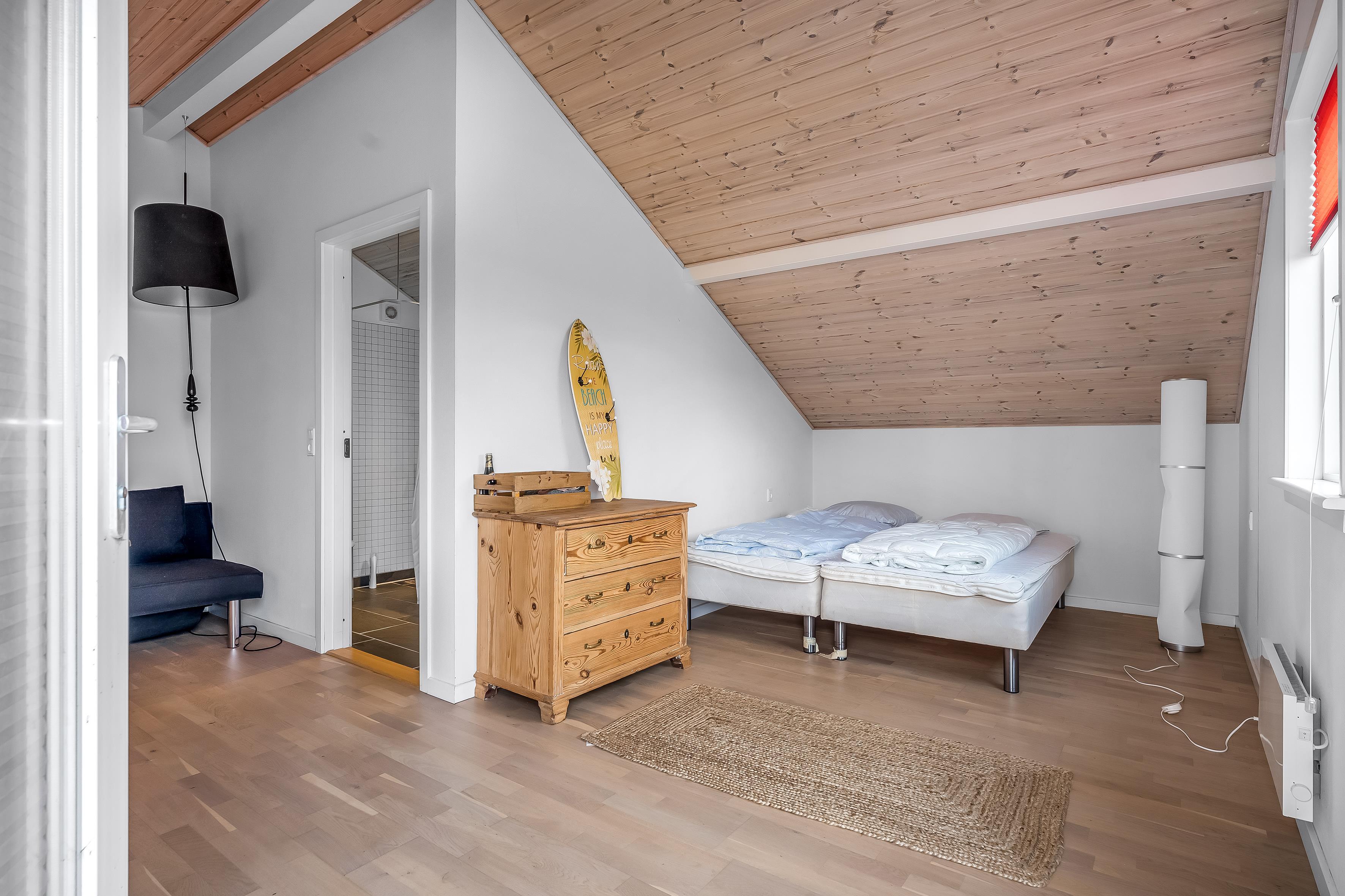 Indenfor finder du fire hyggelige soveværelser, hvoraf tre er udstyret med dobbeltsenge. Det fjerde værelse, der befinder sig i husets anneks, er udstyret med to enkeltsenge. Dette giver fleksibilitet til at rumme både par og enkeltpersoner. Der er også to moderne badeværelser og et gæstetoilet, hvoraf det ene af badeværelserne har både bruser og et luksuriøst badekar, perfekt til at slappe af efter en lang dag. Det andet af badeværelserne befinder sig i husets anneks. Begge badeværelser har gulvvarme, hvilket sikrer en behagelig temperatur, selv på de køligere dage.