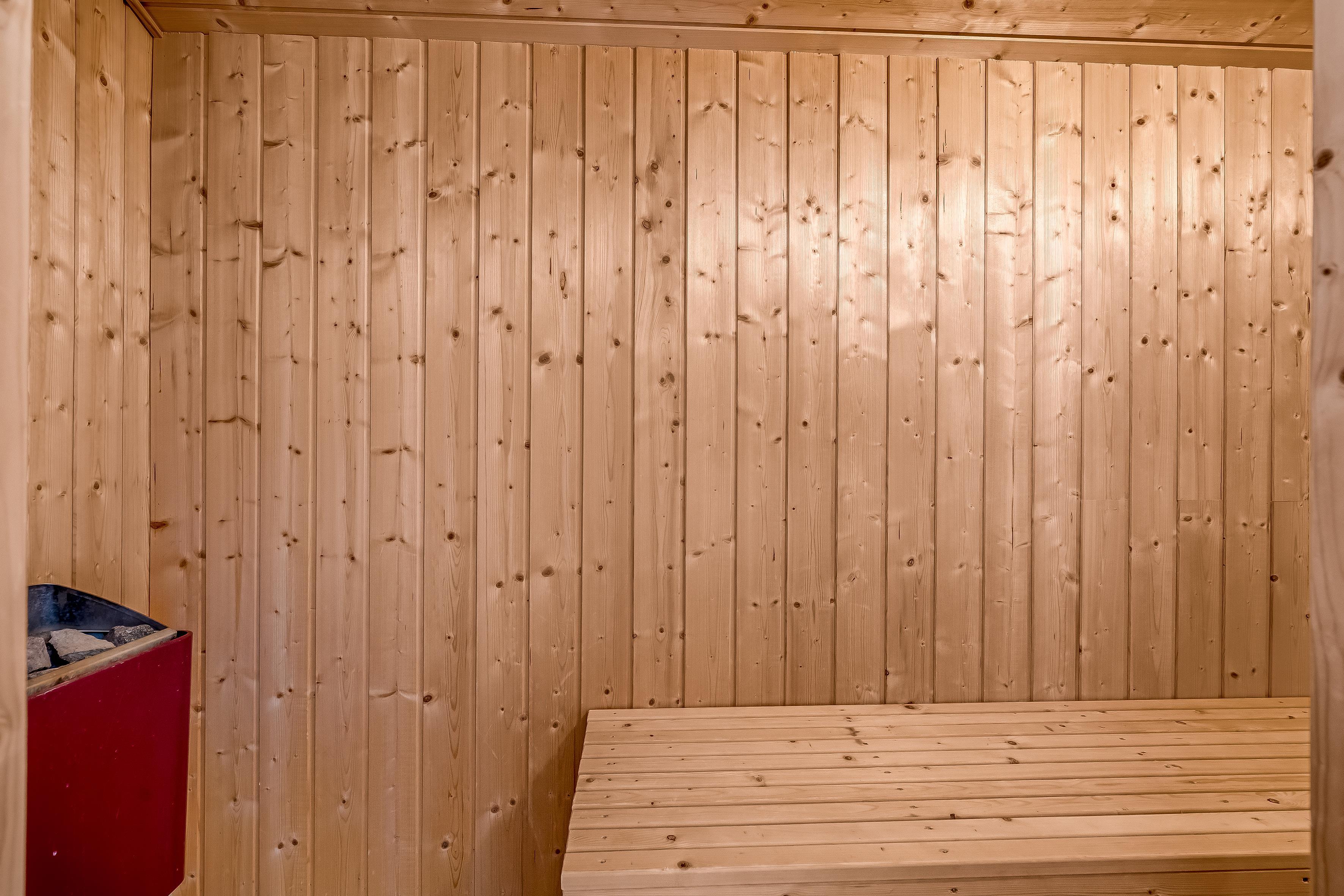 Udendørsområdet er lige så imponerende med en stor terrasse, hvor du kan nyde solen eller grille lækre måltider på den medfølgende grill. For dem, der ønsker at slappe af, er der også en indesauna, perfekt til at løsne op efter en dag med aktiviteter.