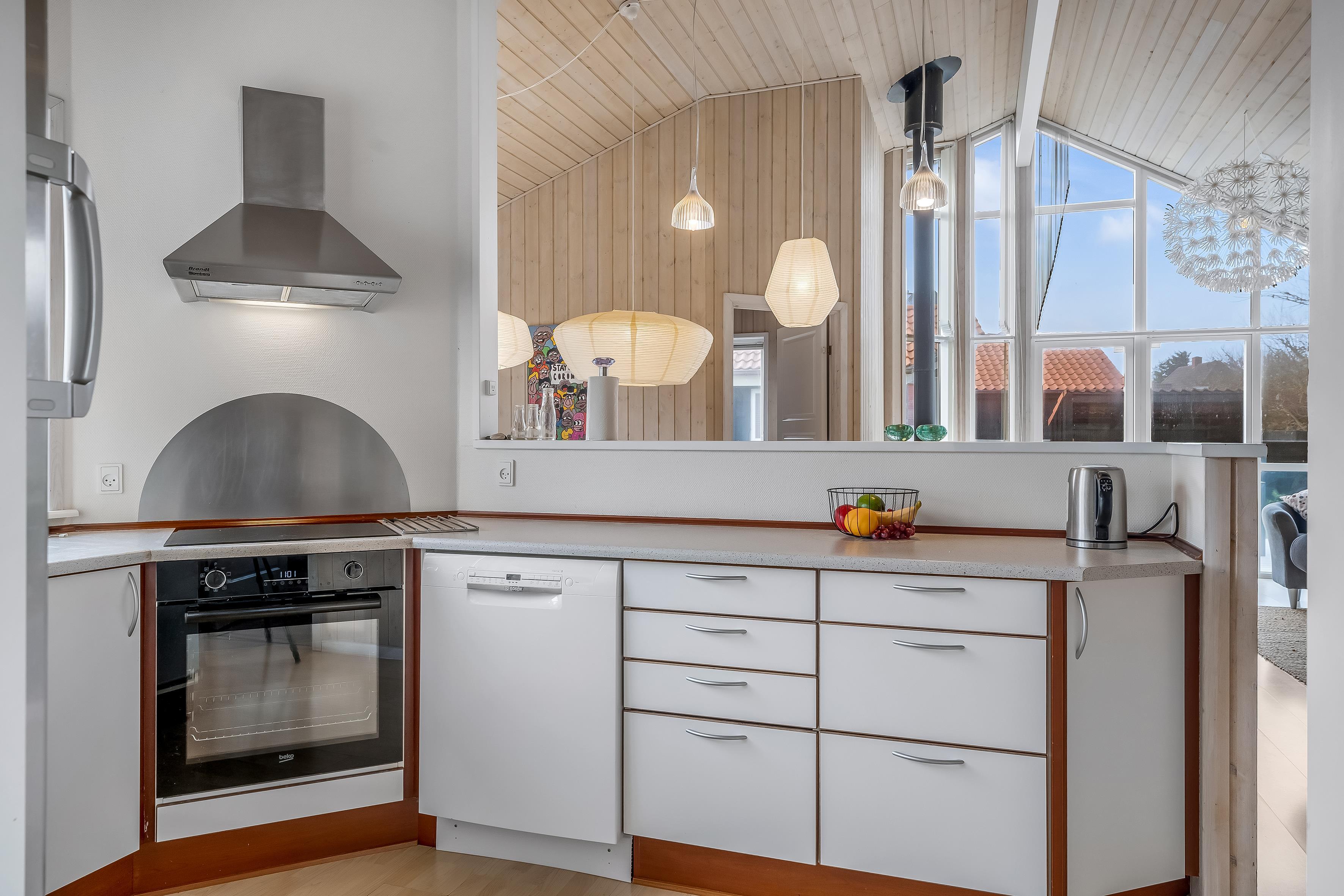 Husets stue er det ideelle sted at samles, hvor du kan nyde en varm ild fra brændeovnen eller se en film på det store fjernsyn med adgang til både dansk og tysk TV. Med Chromecast og trådløst internet kan du nemt streame dine yndlingsprogrammer eller holde kontakten med omverdenen. For dem, der ønsker at tilberede lækre måltider, er det moderne køkken udstyret med alle nødvendige apparater, herunder en induktionskomfur, ovn, mikrobølgeovn, opvaskemaskine, køleskab og en kaffemaskine.
