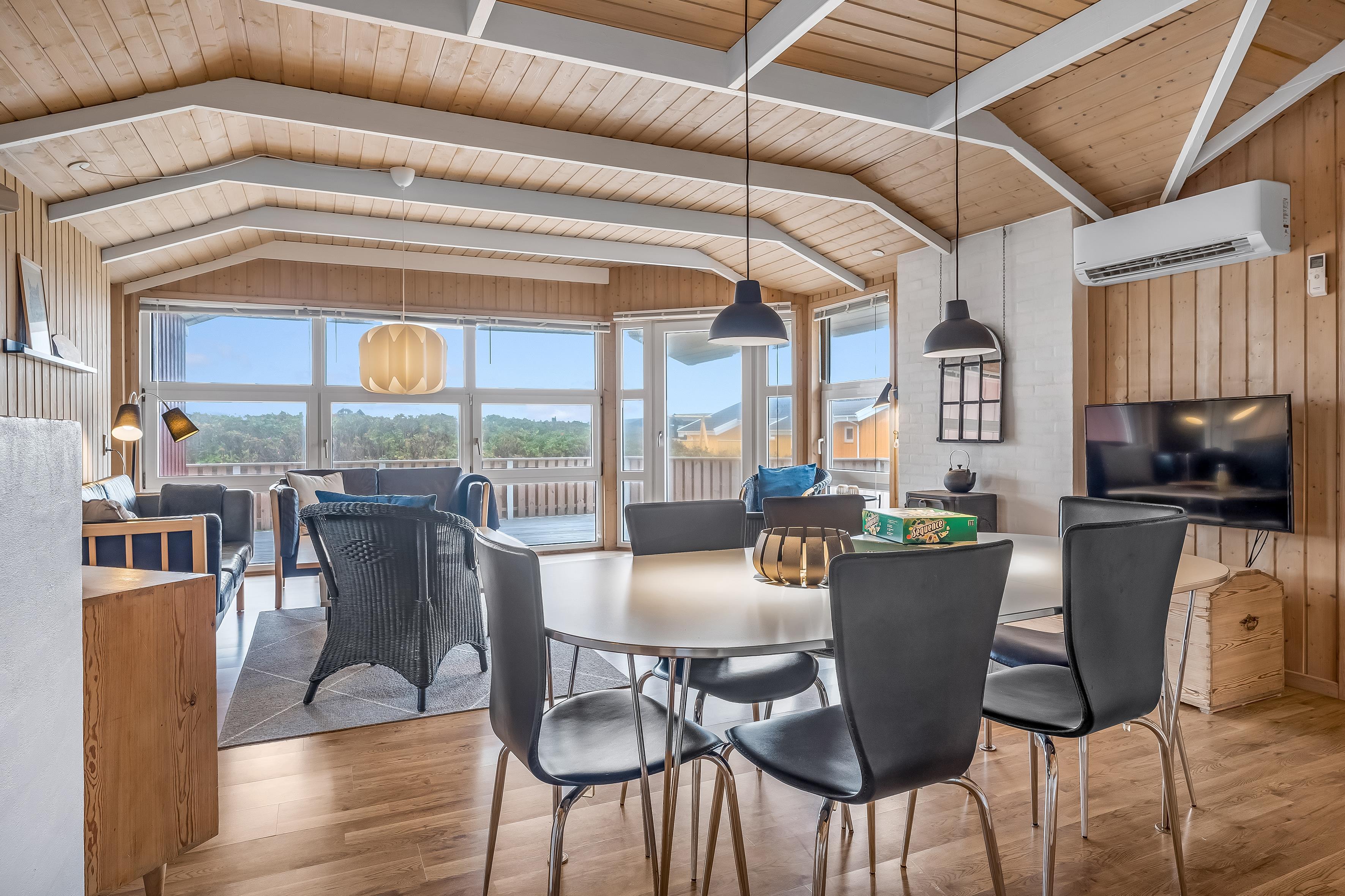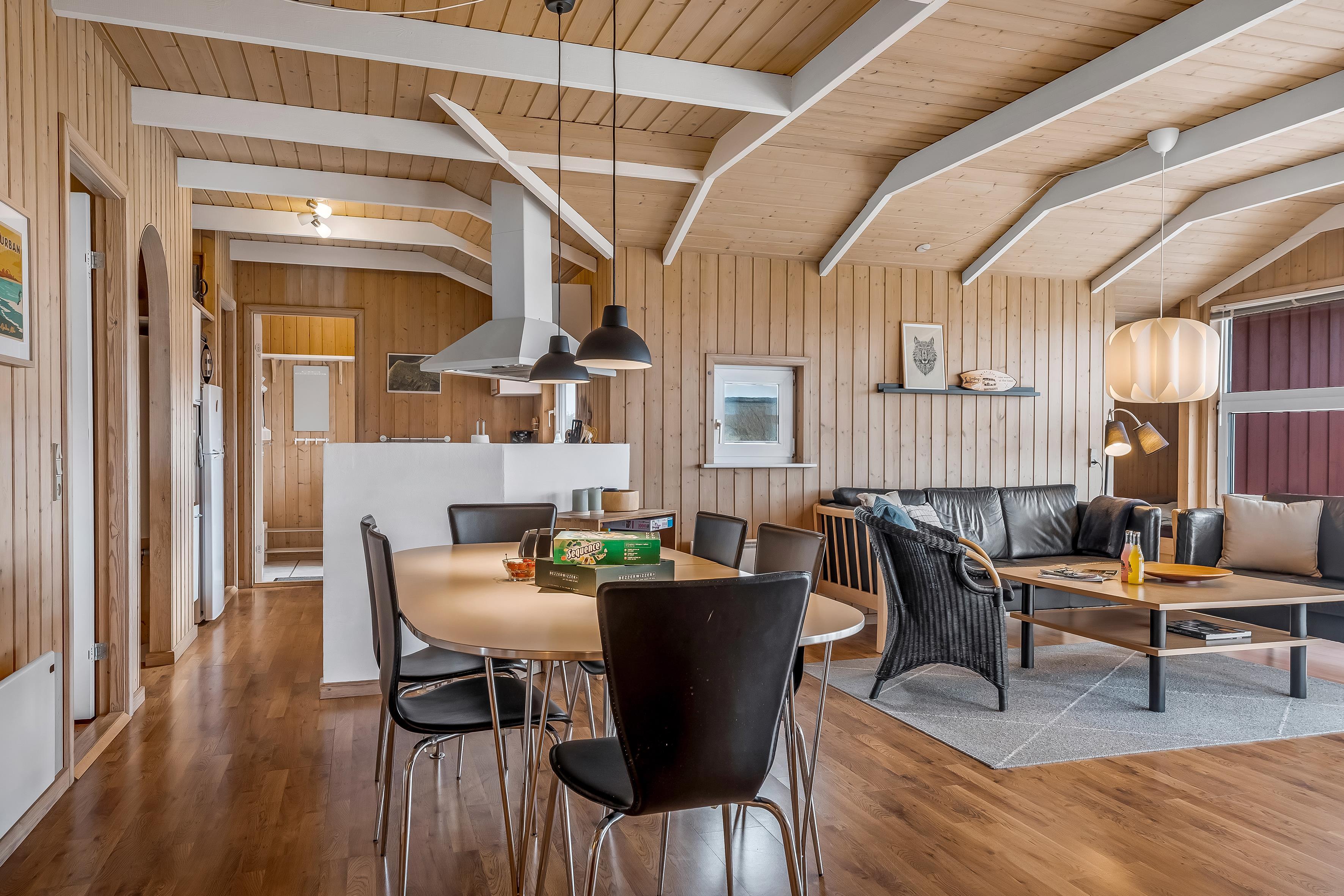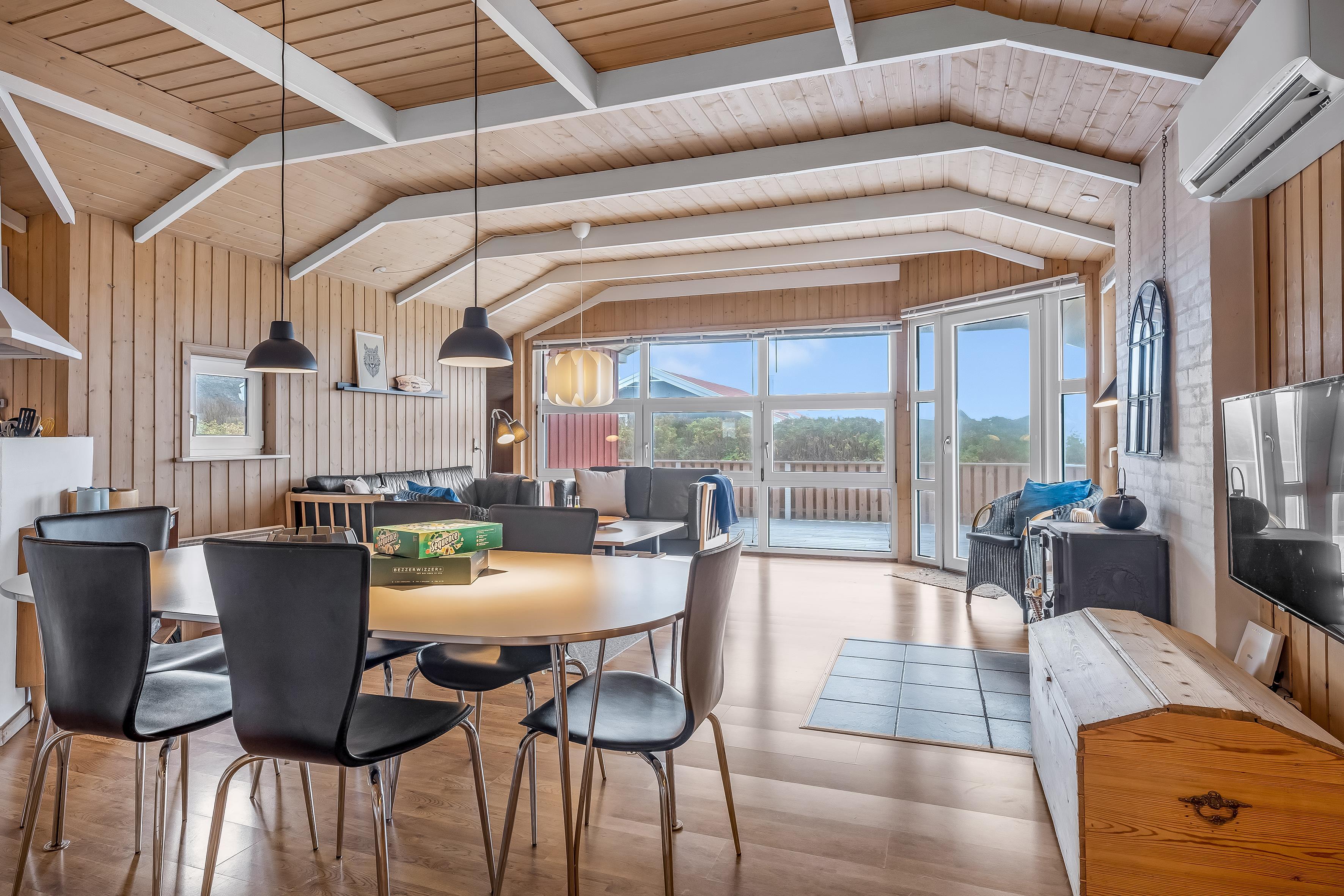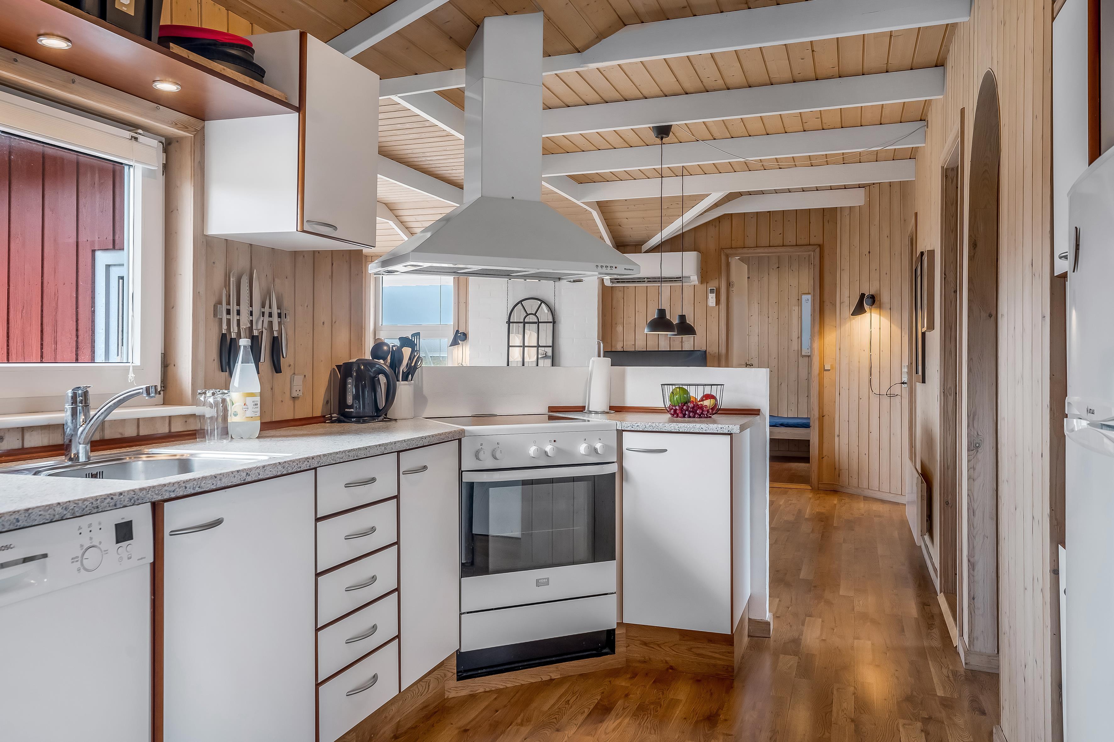 Husets stue er det perfekte samlingspunkt, med en brændeovn, der skaber en hyggelig stemning på kolde aftener. Her kan du slappe af med familie og venner, mens du ser din yndlingsfilm på det medfølgende TV med Chromecast og dansk TV. Der er også trådløst internet tilgængeligt, så du kan holde forbindelsen, hvis du har brug for det.