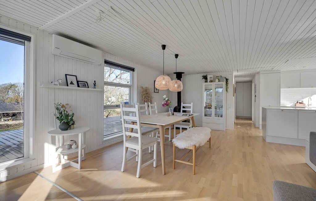 Et lyst og smagfuldt renoveret sommerhus på 75 m², beliggende ugeneret for enden af en lille, lukket vej ved Dejret Klit. Her får I ro, privatliv og de perfekte rammer for en dejlig ferie med natur, nærvær og tid sammen. Huset rummer 3 soveværelser med i alt 6 sovepladser, badeværelse samt et åbent opholdsrum med stue og køkken i ét. Alrummet er husets samlingspunkt, hvor I kan spise, spille og slappe af med udgang til den omkransende terrasse. Køkken og bad fremstår i lyse elementer med fine detaljer, kombineret med flotte fliser. Udenfor venter en grøn have med træer, buske, trampolin til ungerne og plæne til leg og afslapning. Nyd lange aftener på træterrassen, forkæl jer selv i vildmarksbadet, eller prøv en nat i shelteren under åben himmel. Området er oplagt til en ferie tæt på vand, Ebeltoft, Djurs Sommerland og smuk natur i klinterne. En lille sti fører jer hurtigt til Dejret Strand, hvor trappe og badebro gør det nemt at komme i vandet. I er også tæt på en skøn sandstrand, perfekt til badeture og gåture i strandkanten. Tag en tur til Skødshoved lystbådehavn med restaurant og hyggelig iskiosk og oplev den hyggelige stemning ved vandet. Indkøb klares nemt 2 km. fra sommerhuset i Tved ( Super Brugsen har åbent hver dag året rundt fra 8-20), og Mols Bjerge ligger inden for rækkevidde, hvis I vil vandre, cykle eller bare nyde udsigterne. 10 OPLEVELSER INDENFOR KORT AFSTAND. - Mols Bjerge med MTB-spor, vandring, dyreliv og naturoplevelser (10 min.) - Ebeltoft med shopping, cafe´hygge, Fregatten Jylland m.m. (25 min.) - Djurs Sommerland (40 min.) - Byliv, Aros, Bruuns Galleri, Salling Rooftop og kultur i Århus (50 min. ) - 3 lækre golfbaner (Fra 15-40 min.) - Kalø Vig Slotsruiner med iskiosk og lille hyggelig badestrand (20 min.) - Skandinavisk Dyrepark og Reepark (40 min.) - Skødshoved Strand med iskiosk og sommeridyl (2 km.) - Lokalt bryghus i Drejret (3 km.) Lær at brygge øl. - Fuglsø Centret med koncerter og oplevelser året rundt. Obs, udlejes ikke til erhversmæssigt brug.