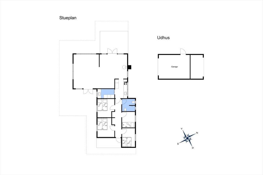 Allerede ved ankomsten mærker du den afslappede feriestemning, som strømmer fra det lyse og venlige sommerhus. Her er højt til loftet – både billedligt og bogstaveligt – og rummet er indrettet, så det inviterer til nærvær og samvær. I stuen kan I samle jer omkring brændeovnen, der knitrer hyggeligt på kølige aftener, og med det åbne opholdsrum har I altid følelsen af at være tæt på hinanden – uanset om nogle spiller kort, mens andre laver mad. Indretningen er enkel og behagelig, med et naturligt lysindfald, der strømmer ind gennem vinduerne og giver huset en dejlig lethed. Når det er sengetid, kan hele familien finde sig til rette, for her er god plads til op til syv personer, så både venner, bedsteforældre eller teenagebørn kan være med.