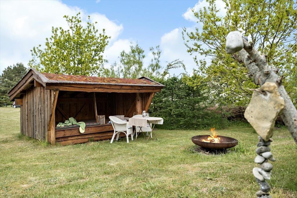 Udenfor venter en særlig ferieoplevelse. For enden af haven, tæt på plantagen, finder du et shelter og et bålsted – og netop her fornemmer du for alvor, hvordan naturen og stilheden tager over. Her kan du nyde lyden af vinden i trækronerne, fuglesang og knitrende bål i skumringen. Haven har desuden flere dejlige opholdssteder, hvor du kan slappe af med en kop kaffe eller en god bog. Den rummelige terrasse giver rig mulighed for udendørs måltider, og det omkringliggende landskab gør det let at glemme alt om hverdagens travlhed.