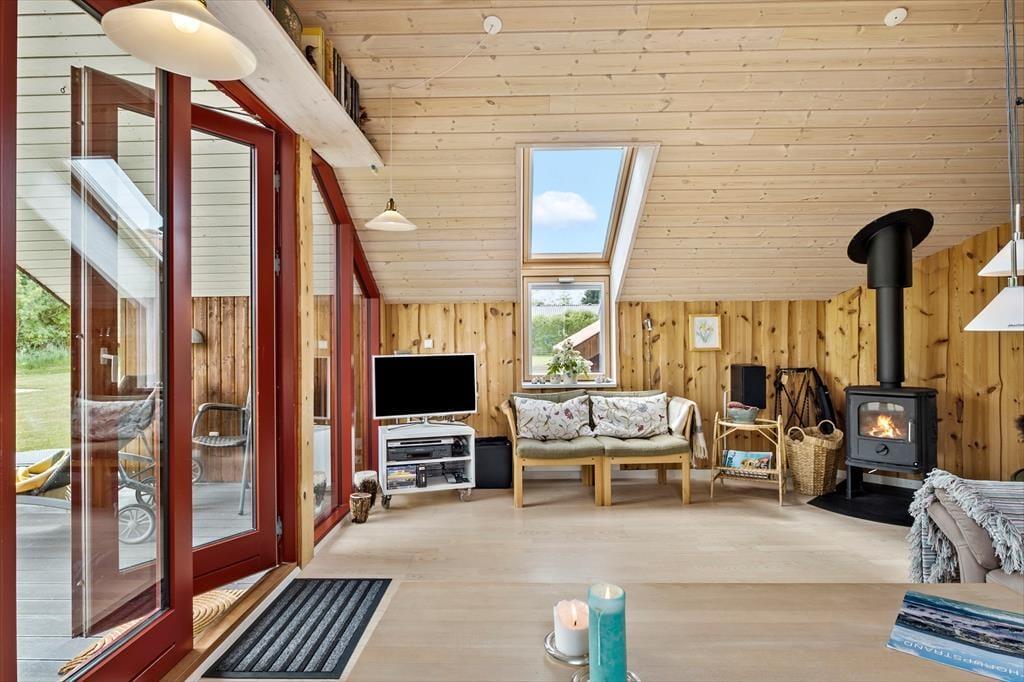 Huset emmer af sommerhusidyl og inviterer dig straks til at sænke skuldrene og nyde nuet. Det lyse opholdsrum har direkte udgang til terrassen og er indrettet med komfortable møbler, spiseplads og et åbent køkken, så du nemt kan være social, mens der laves mad. Brændeovnen skaber varme og hygge på kølige dage, og husets soveværelser er indrettet med tanke på komfort og ro. Planløsningen gør huset oplagt til både parferie og ferier med familie eller venner. Her er der god plads til nærvær og fælles måltider, samtidig med at der er mulighed for at trække sig tilbage og få lidt alenetid.