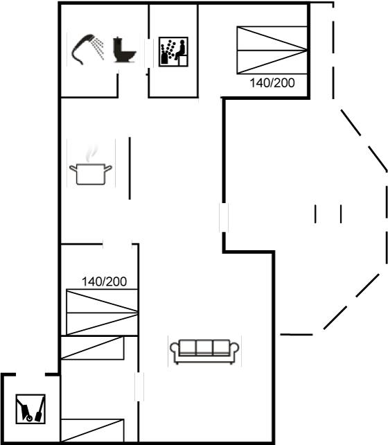 Der er i alt 3 soveværelser. Sovepladserne fordeler sig på: 4 sovepladser i dobbeltsenge. 2 sovepladser i enkeltsenge.