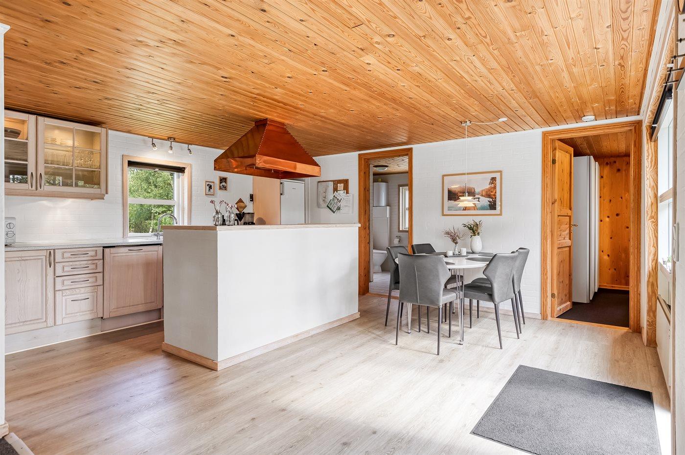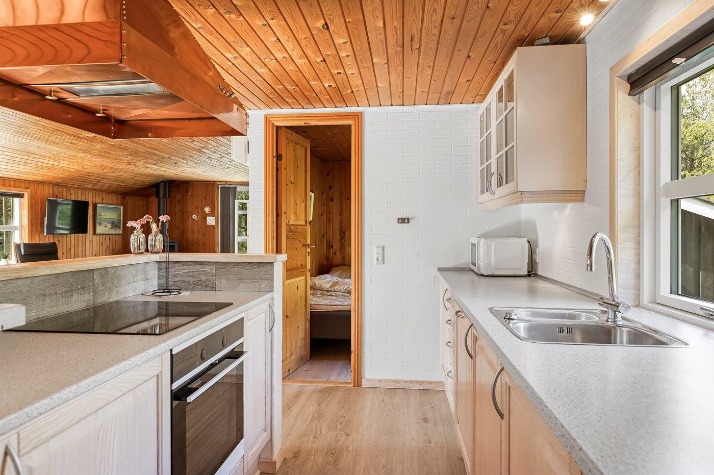 Køkkenet er udstyret med 1 køleskab. Der er 4 keramiske kogeplader, varmluftovn, mikrobølgeovn samt opvaskemaskine.