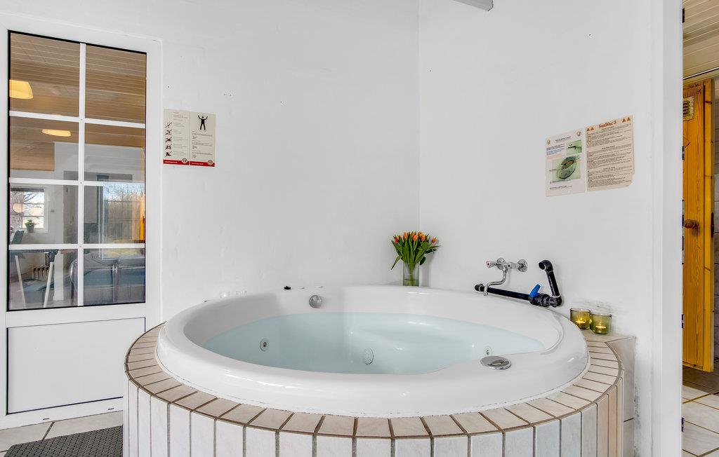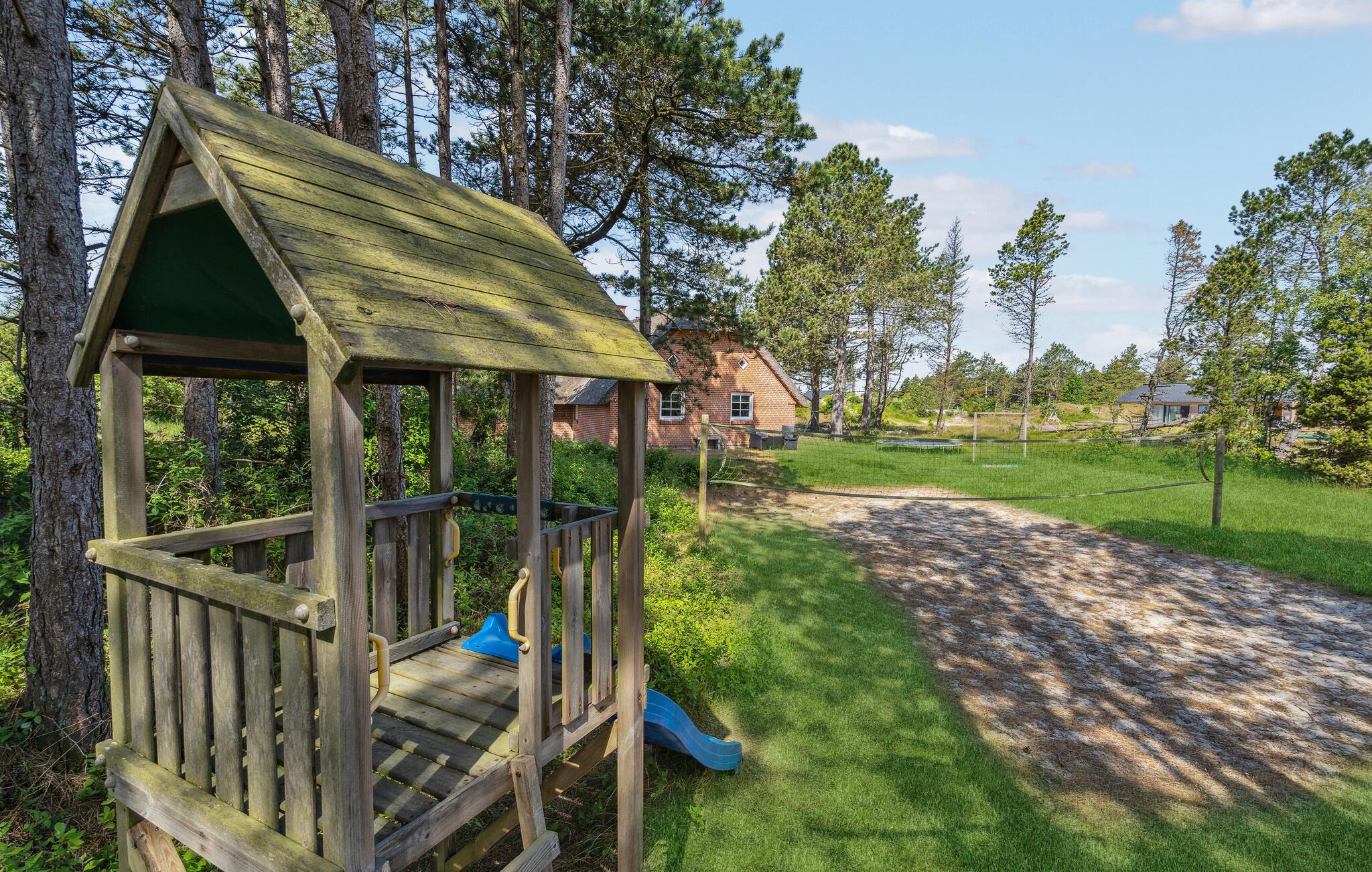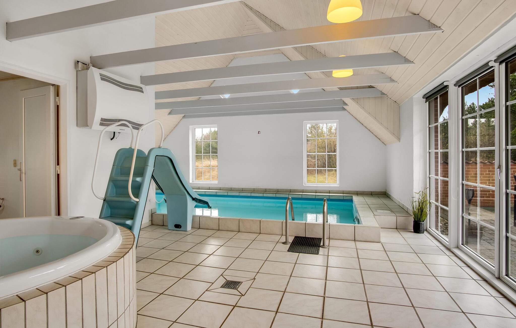 Her er der et helt igennem skønt feriehus til hele familien samt jeres gode venner og deres børn. Alle får god plads at brede sig på, for I kan se frem til nogle store fællesarealer med moderne, smagfulde møbler og lækre indretningsdetaljer. Her kan I komme helt ned i gear og glemme alt om hverdagens travle program. Hop en tur i poolen og nyd udsigten til haven imens. Børnene vil garanteret elske rutsjebanen og bruge en god del af tiden her. Efter en lang gåtur på stranden kan I slappe af i hotellets sauna og derefter lægge fødderne op på sofaen. I vinterhalvåret kan I skrue ekstra op for hyggen ved at tænde ild i brændeovnen og snakke om dagens oplevelser, ??mens flammerne knitrer i baggrunden.