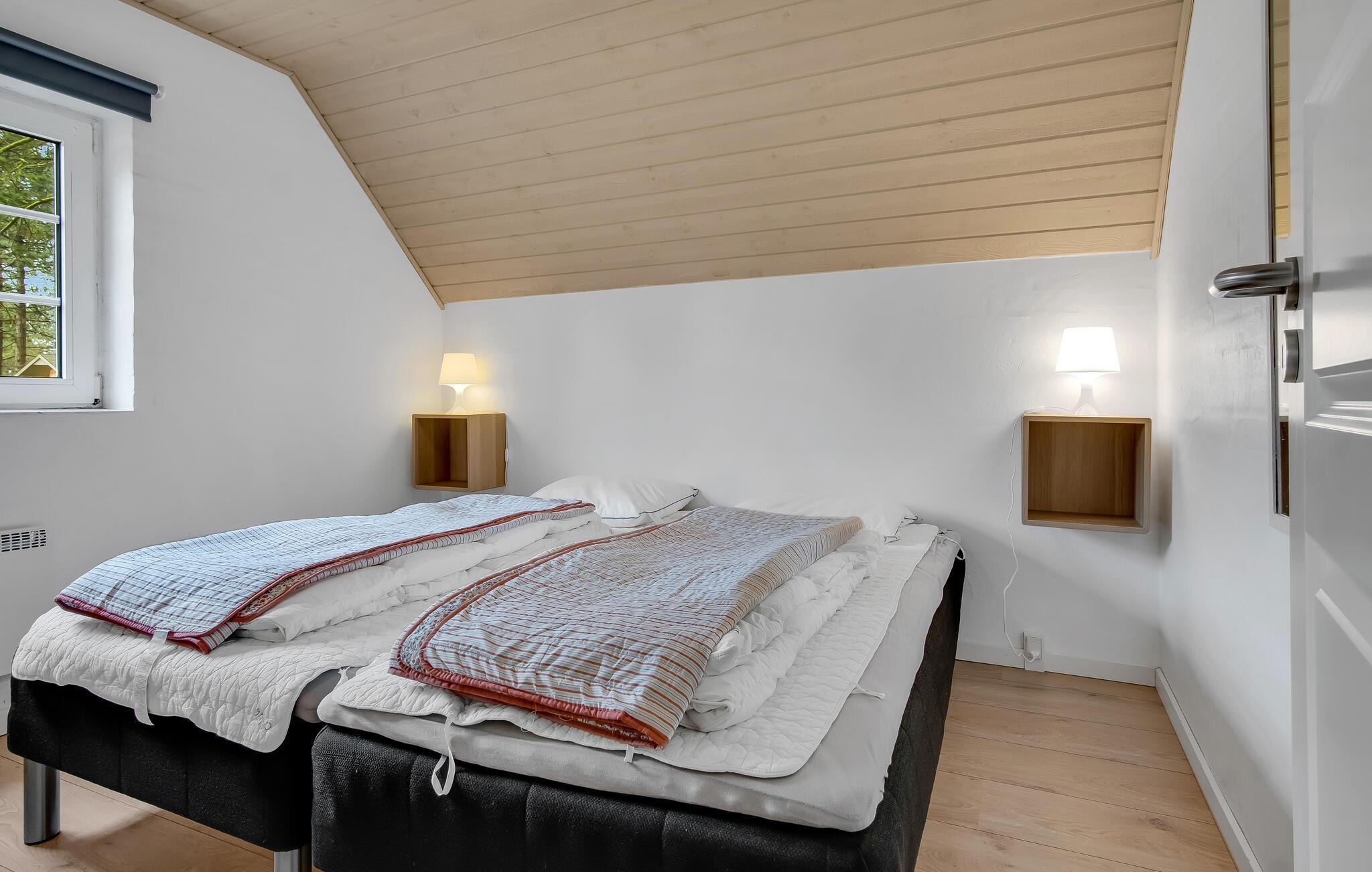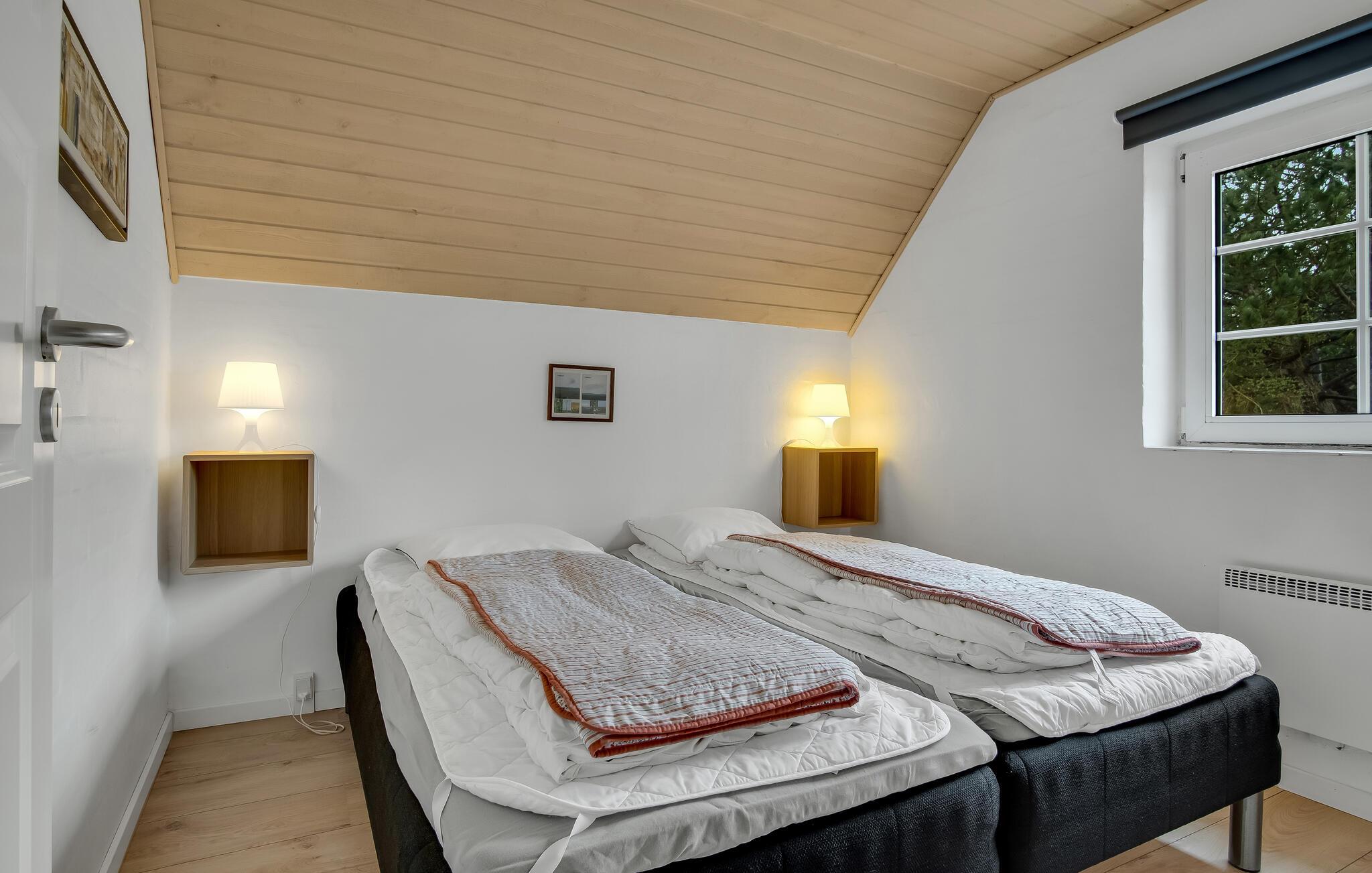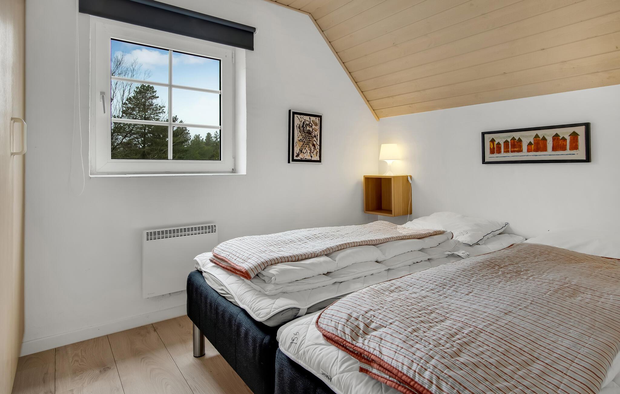 Her er der et helt igennem skønt feriehus til hele familien samt jeres gode venner og deres børn. Alle får god plads at brede sig på, for I kan se frem til nogle store fællesarealer med moderne, smagfulde møbler og lækre indretningsdetaljer. Her kan I komme helt ned i gear og glemme alt om hverdagens travle program. Hop en tur i poolen og nyd udsigten til haven imens. Børnene vil garanteret elske rutsjebanen og bruge en god del af tiden her. Efter en lang gåtur på stranden kan I slappe af i hotellets sauna og derefter lægge fødderne op på sofaen. I vinterhalvåret kan I skrue ekstra op for hyggen ved at tænde ild i brændeovnen og snakke om dagens oplevelser, ??mens flammerne knitrer i baggrunden.