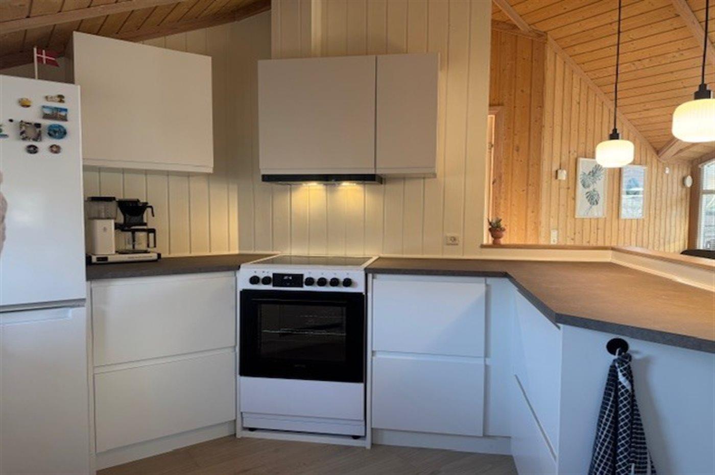 Køkkenet er udstyret med 1 køleskab. Der er 4 induktionskogeplader, varmluftovn, mikrobølgeovn samt opvaskemaskine.