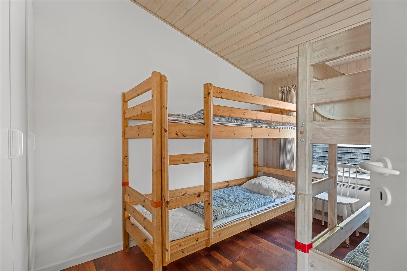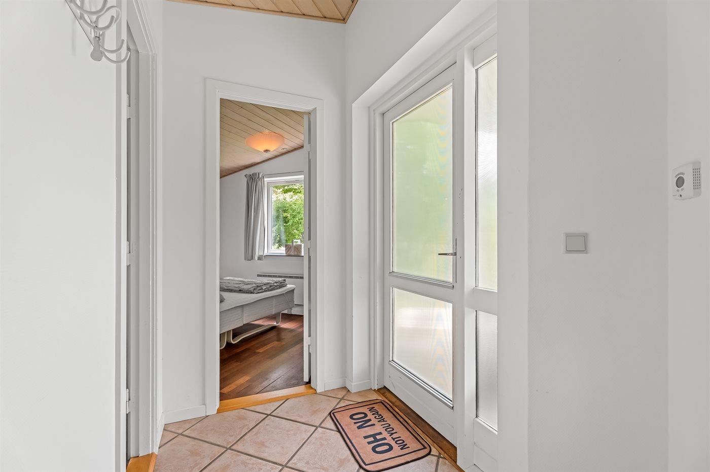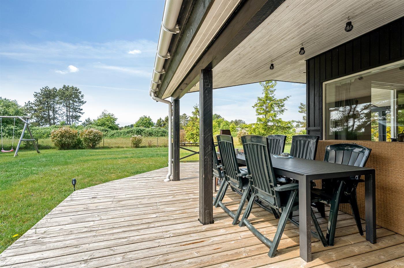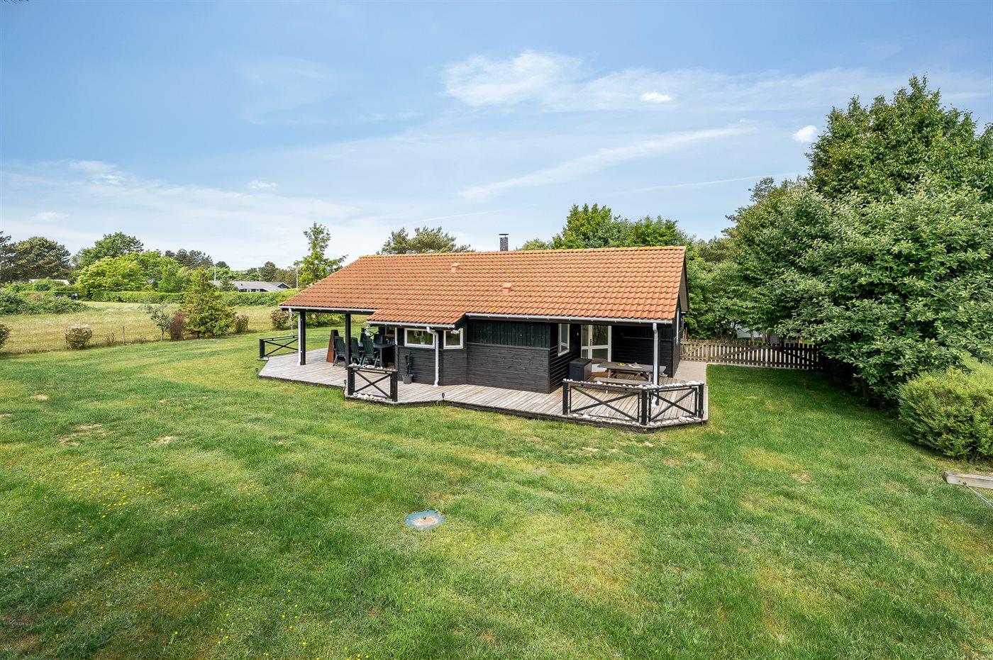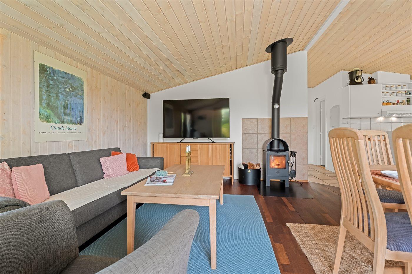 Dejligt sommerhus i træ, bygget i 2004, beliggende kun 150 m fra havet på en indhegnet naturgrund med beplantning. Til huset hører stor åben terrasse og 2 overdækkede terrasser med diverse havemøbler. Indvendig er der dels trævægge, dels malede vægge samt trælofter. Trægulve, dog klinker i badeværelse og gang. Dejligt badeværelse med gulvvarme, bruseniche og vaskemaskine. Det åbne køkken har gulvvarme og er udstyret med bl.a. opvaskemaskine, mikrobølgeovn og komfur med keramiske kogeplader. Skøn opholdsstue med brændeovn, DVD-afspiller, TV og stereoanlæg med CD-afspiller. Sovepladserne er fordelt på 1 værelse med dobbeltseng og 1 med 2 køjesenge. Desuden anneks med 2 enkeltsenge og lille tekøkken. Til de små feriegæster er der høj barnestol til rådighed.