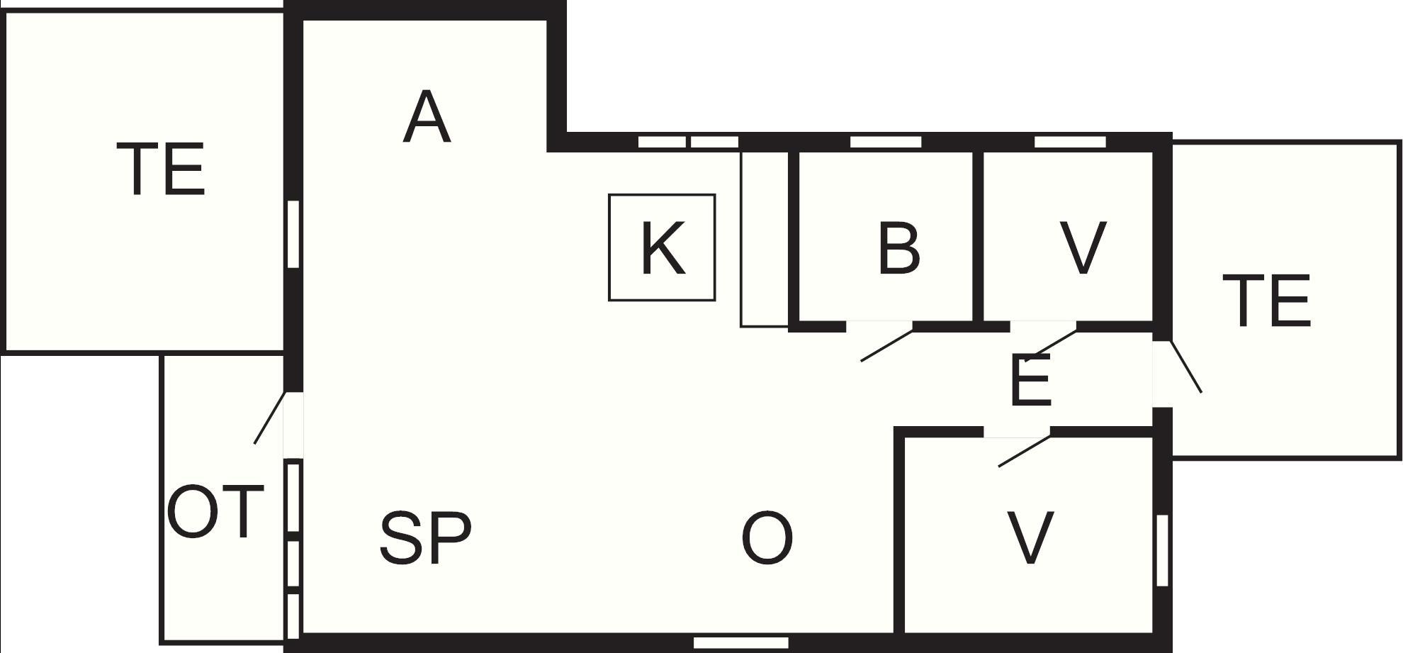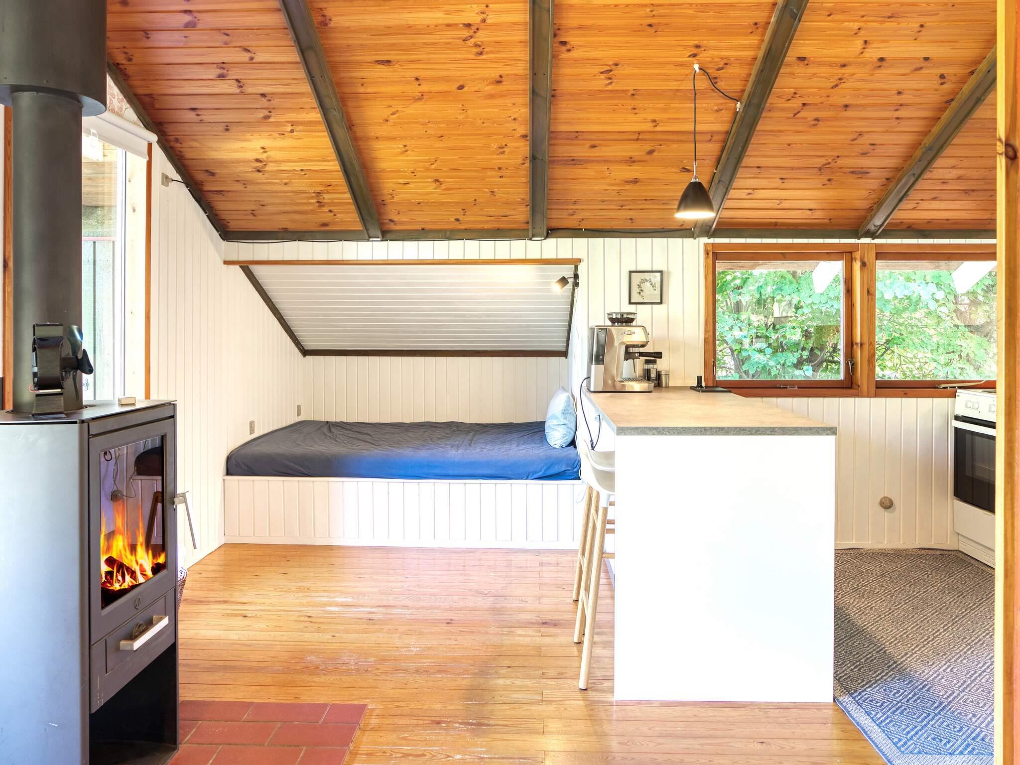 Huset består af en entre og på hver side af entreen ligger der et værelse med en dobbeltseng. Åbent køkken/alrum, stue og en alkove med mulighed for opredning. Endvidere et pænt badeværelse.