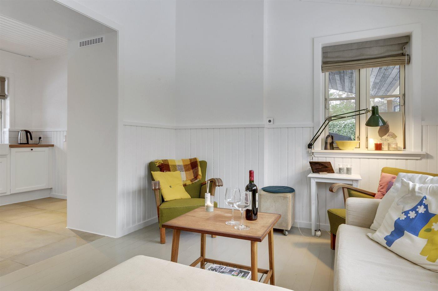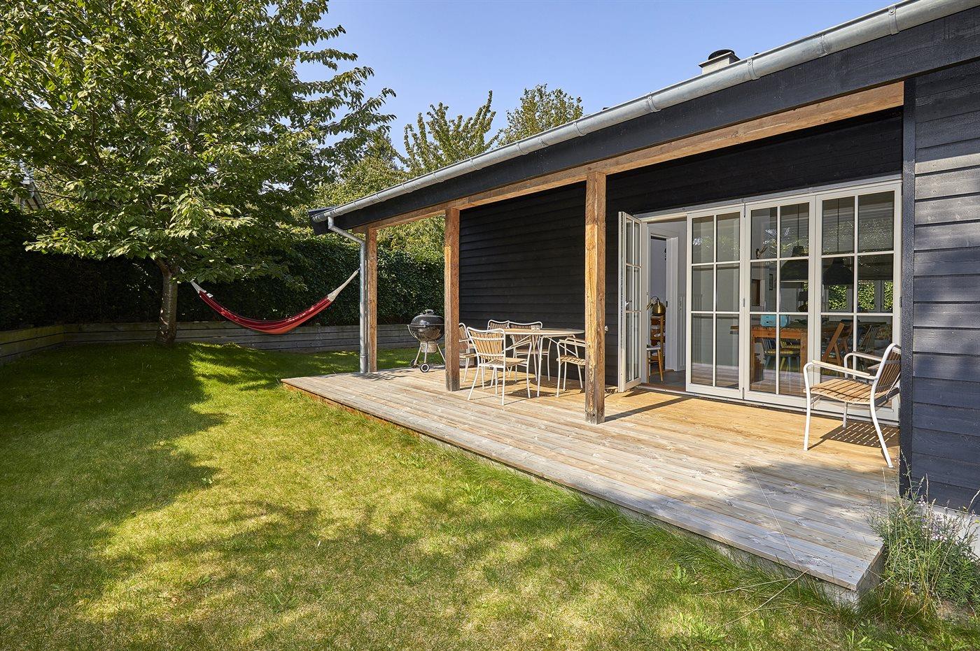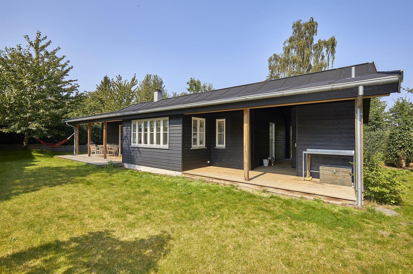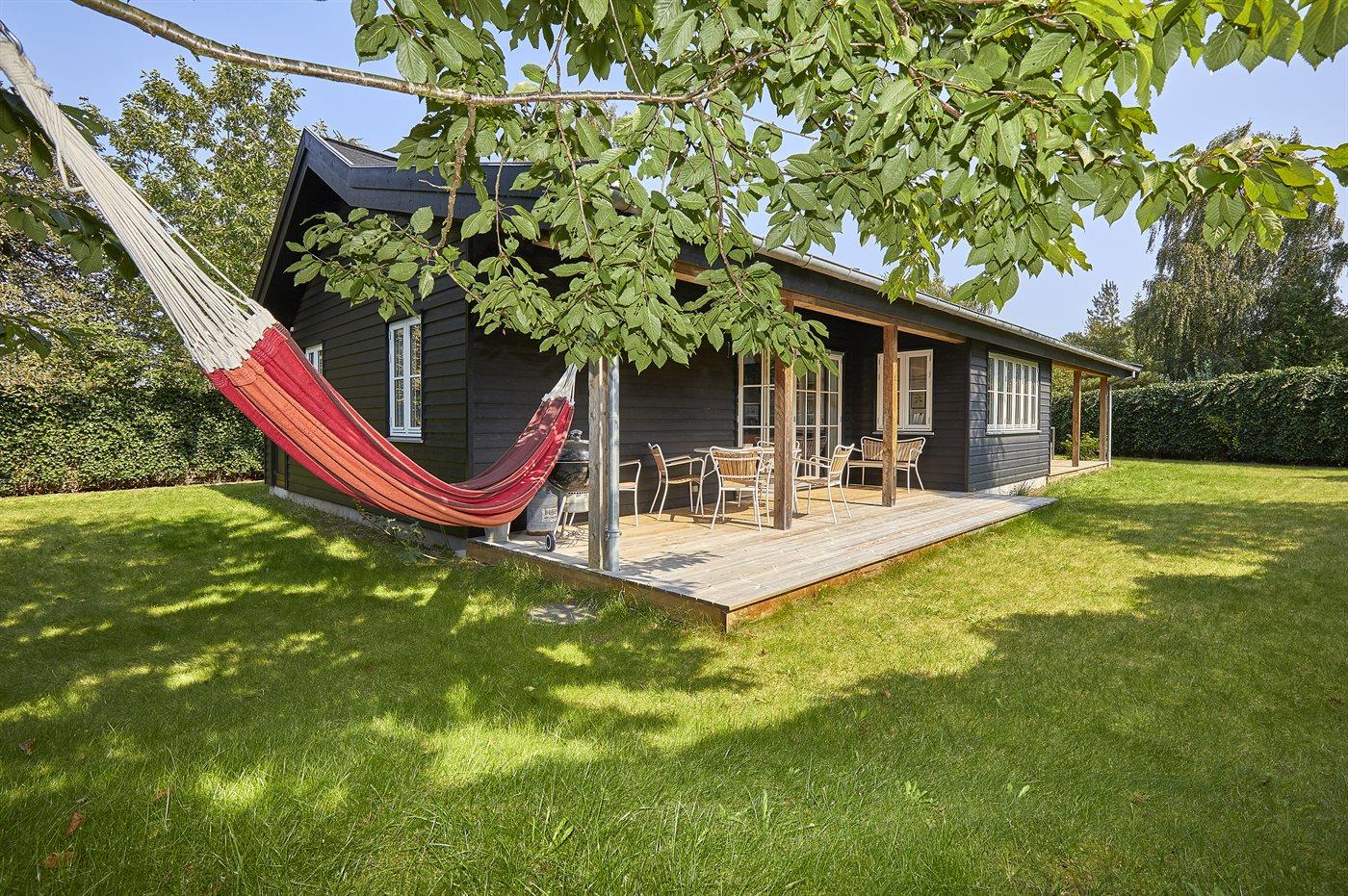 Dette flotte sommerhus ligger ugenert - i et hyggeligt sommerhusområde med dejlig badestrand og en lille lystbådehavn. Til huset hører en dejlig, overdækket træterrasse.