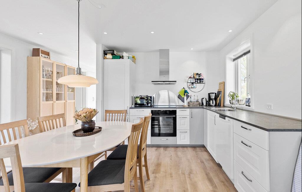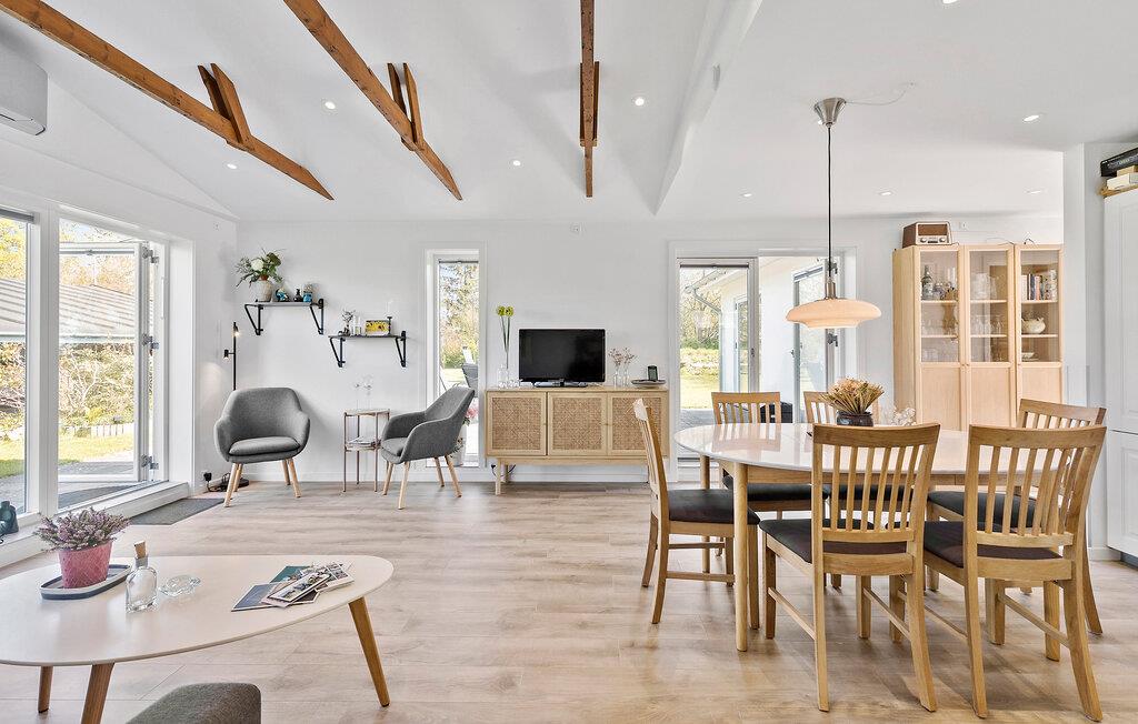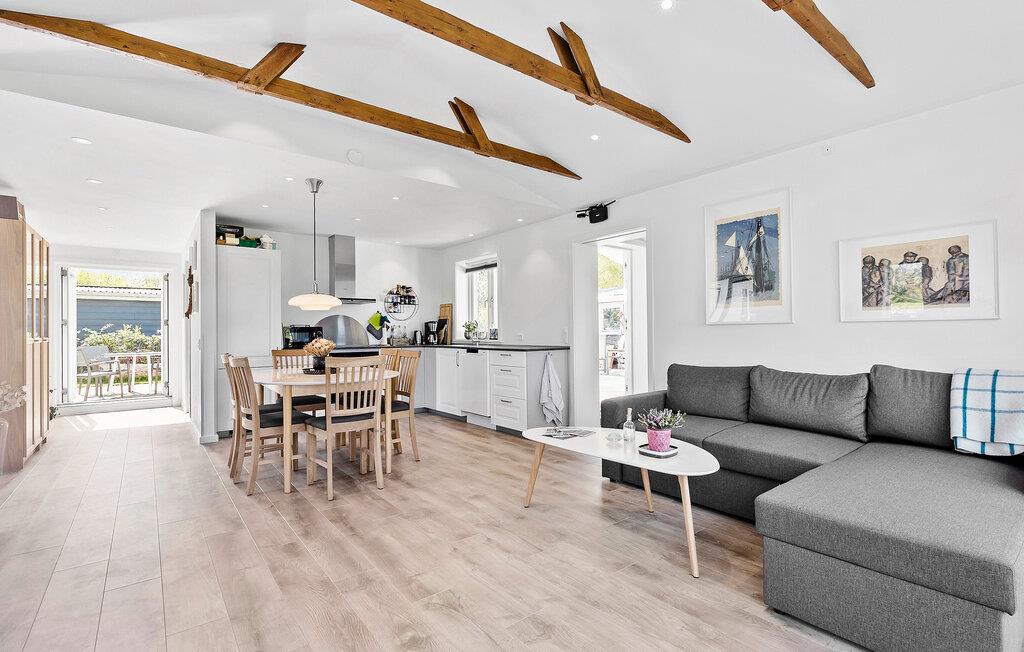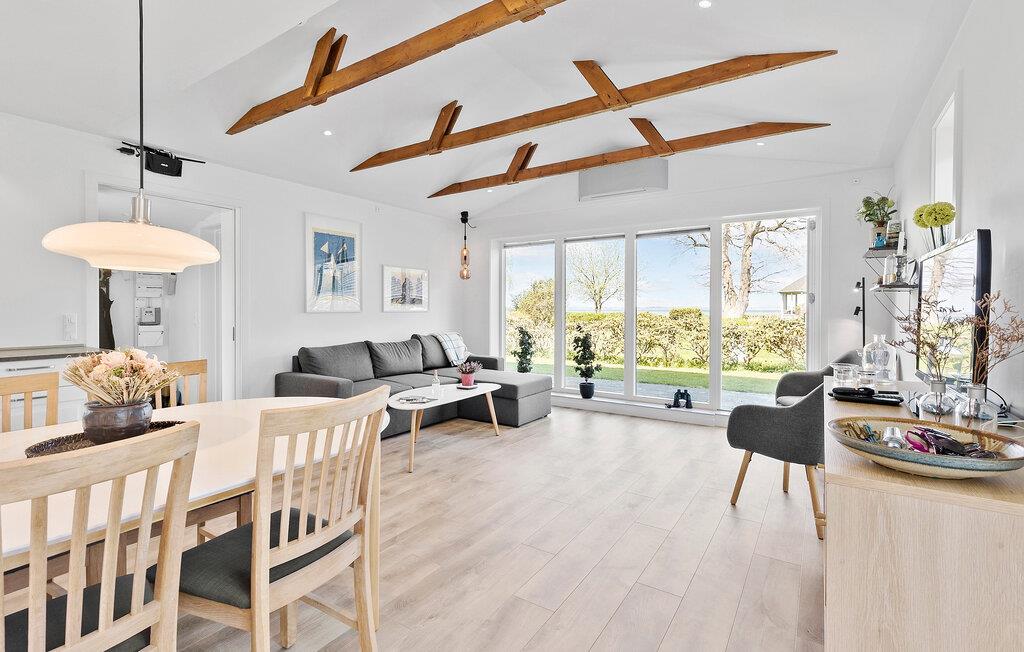 Velkommen til dette skønne hus, der ligger lige ved fjorden og tæt på Kulhuse, og hvor I får de ideelle rammer for årets bedste uger med familien. Huset er nydeligt indrettet med rustikke loftsbjælker, lyse farver og store vinduespartier, der giver et lækkert lysindfald og udsigt til haven og ud til fjorden. Køkkenet er ganske rummeligt, så gør blot madlavningen til et sjovt fællesprojekt, inden der dækkes op til en hyggelig aftensmad ved spisebordet. Senere kan I hive brætspillene frem eller sætte jer godt til rette i sofaen med lækre snacks og en god film på tv'et, mens I lægger planer for de kommende dage.