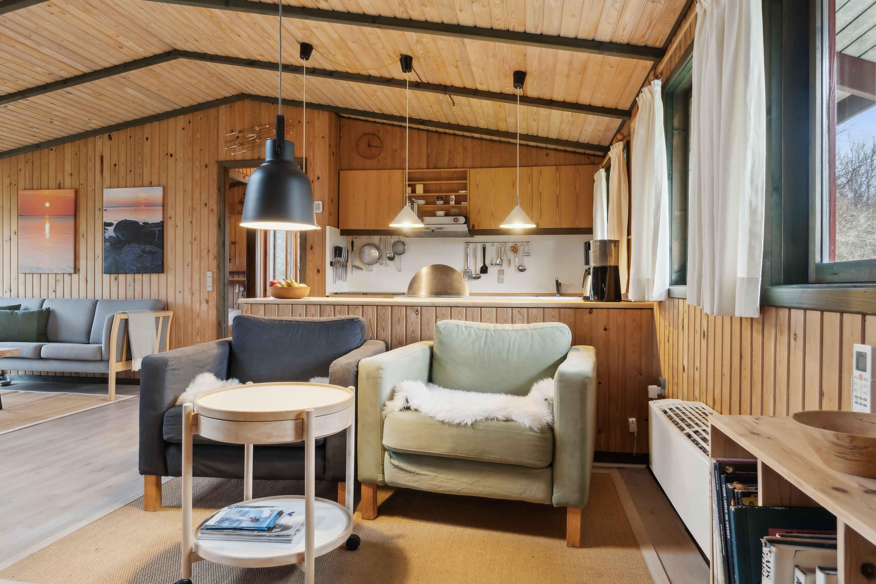Hyggeligt sommerhus i Trend med moderne faciliteter og tæt på strand, skov og legeplads.