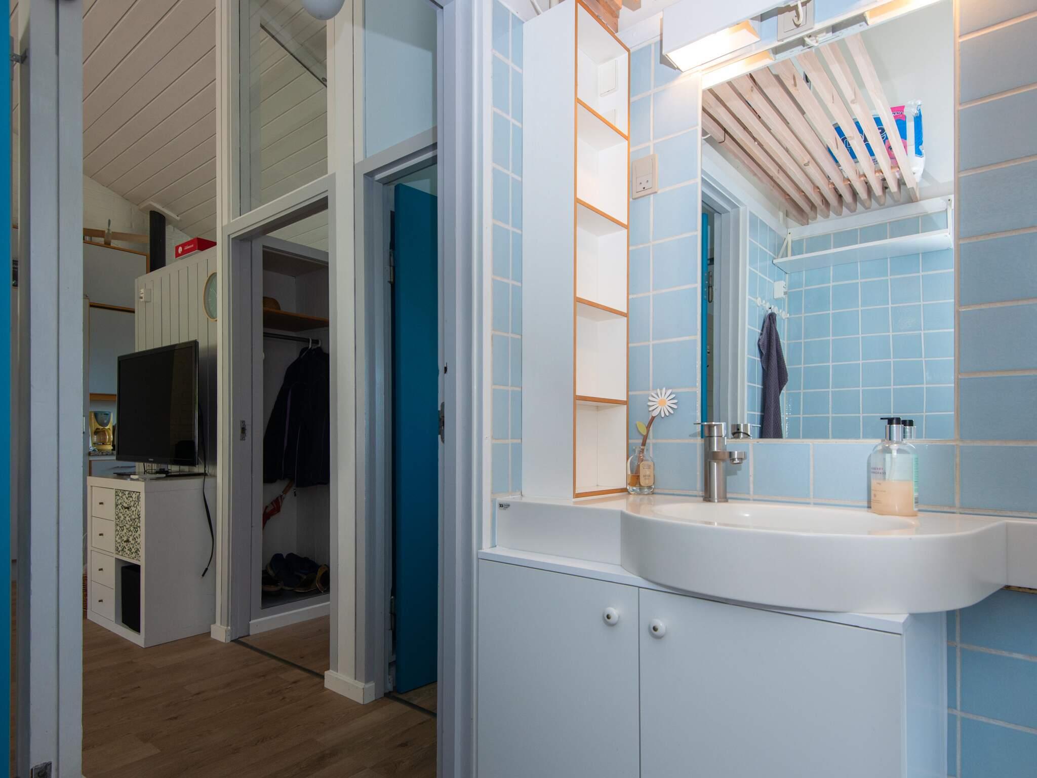 Køkkenet er veludstyret med elkomfur, køleskab med fryser, mikroovn, kaffemaskine og opvaskemaskine, hvilket gør det nemt og behageligt at tilberede måltider. Badeværelset er udstyret med toilet, håndvask og bruser. Udenfor byder den anlagte have på havemøbler, liggestole og en