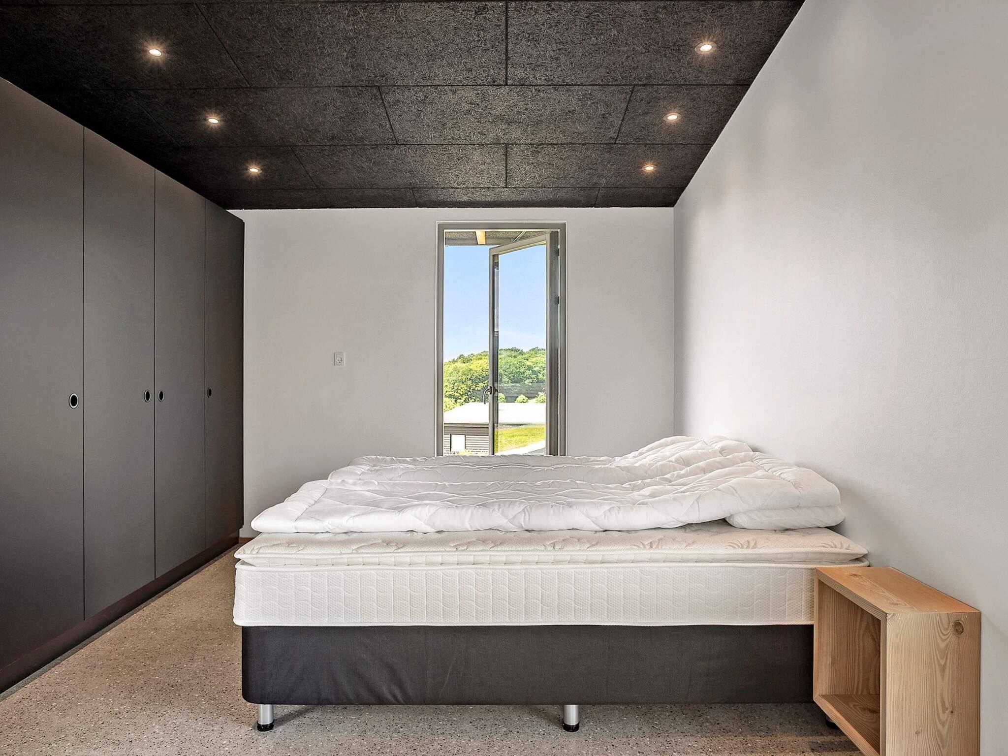 Indendørs mødes I af et lyst og stilrent feriehus med en gennemført materialestil. De polerede betongulve, vægge beklædt med brede douglasplanker og sorte Troldtekt-lofter skaber en eksklusiv og moderne stemning. De store vinduespartier lukker naturen og lyset helt ind og giver en fantastisk rumfornemmelse. Husets samlingspunkt er det elegante køkken i egetræ, som er fuldt udstyret og indbyder til både fælles madlavning og hyggelige stunder.