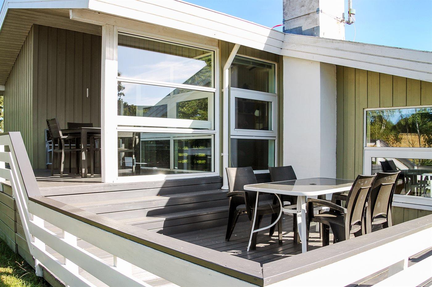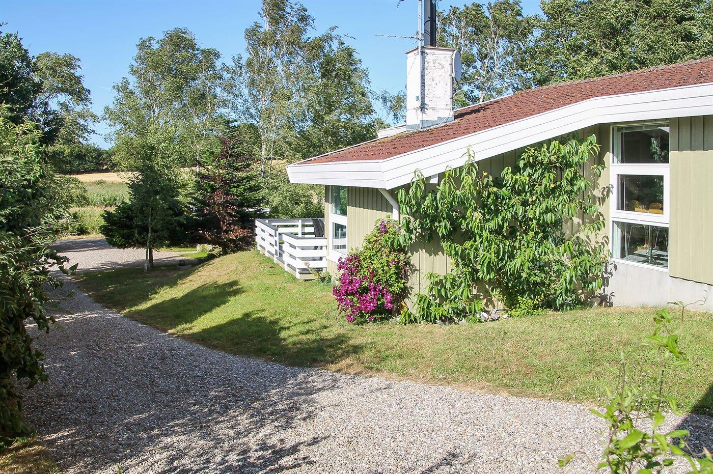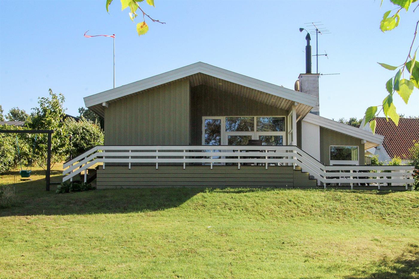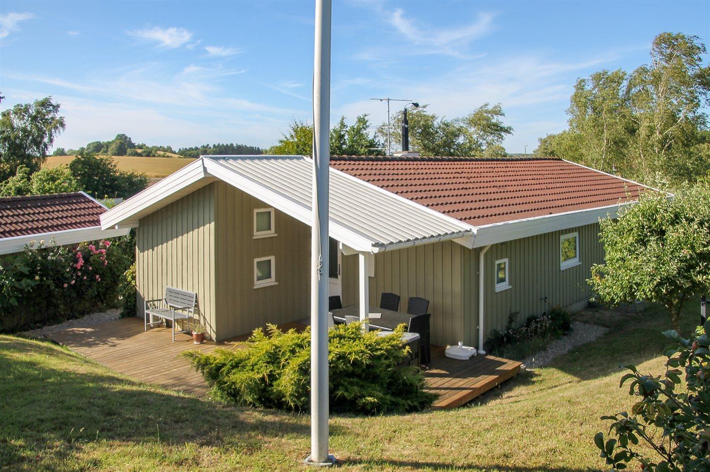 Feriehuset på 90 m² er bygget i år 2000 ligger på en 1200 m² stor naturgrund med legeredskaber og andre aktiviteter til børn. Feriehuset råder ydermere over 40 m² åbent terrasse areal hvoraf de 15 m² er overdækket.