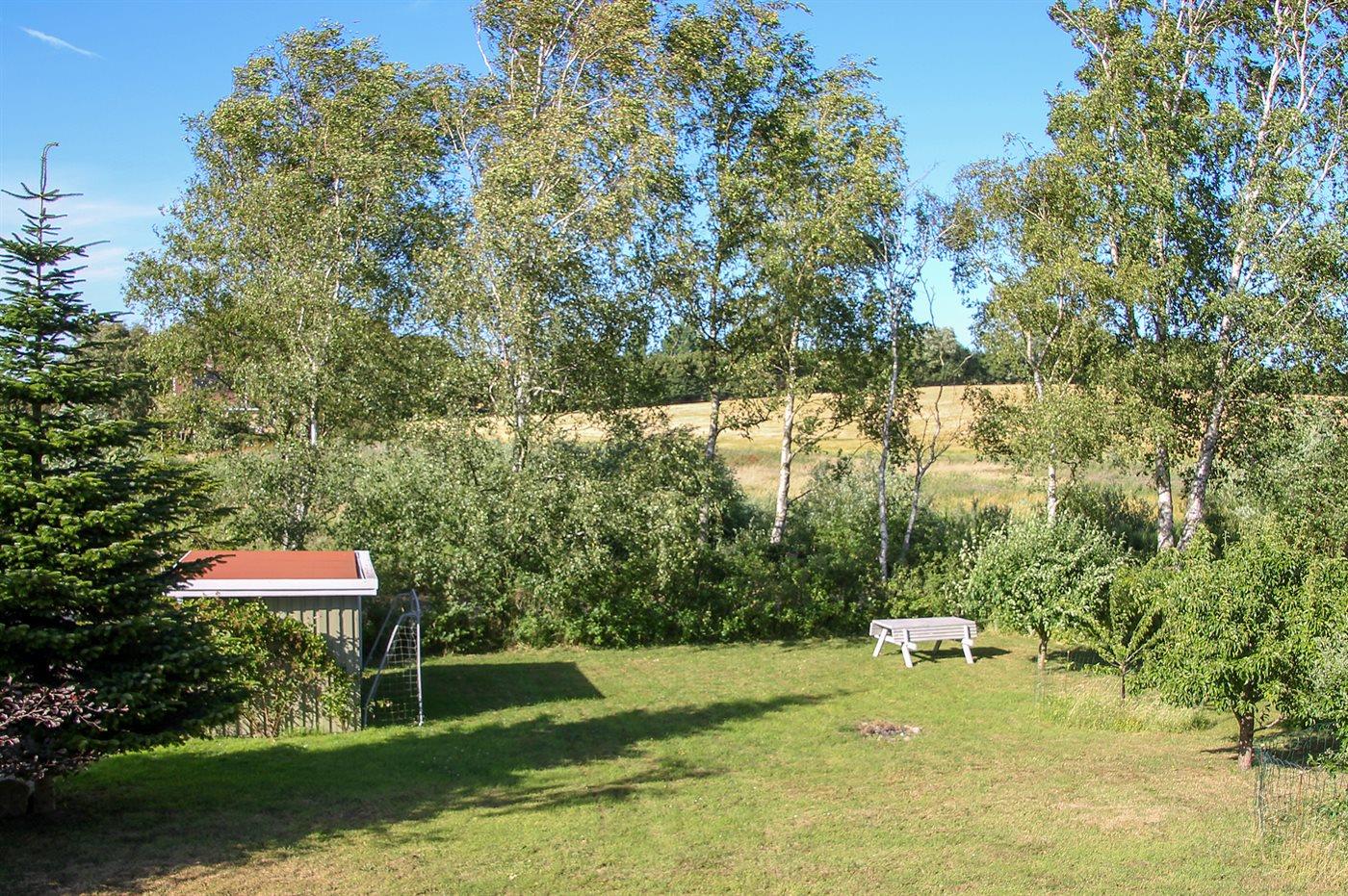 På grunden forefindes gynge, sandkasse, fodboldmål og bålsted samt et udhus med en 100 l kummefryser. Udhuset kan bruges til opbevaring af f.eks. cykler og evt. tørring af waders og fiskegrej og her opbevares forskellige legeredskaber samt en grill. Der forefindes ydermere fine parkeringsforhold på grunden.