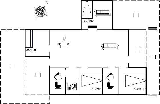 Der er 2 badeværelser med hver sin bruseniche samt toilet. Der er gulvvarme på begge badeværelser. I det ene badeværelse er der sauna, hvor der er mulighed for afslapning.