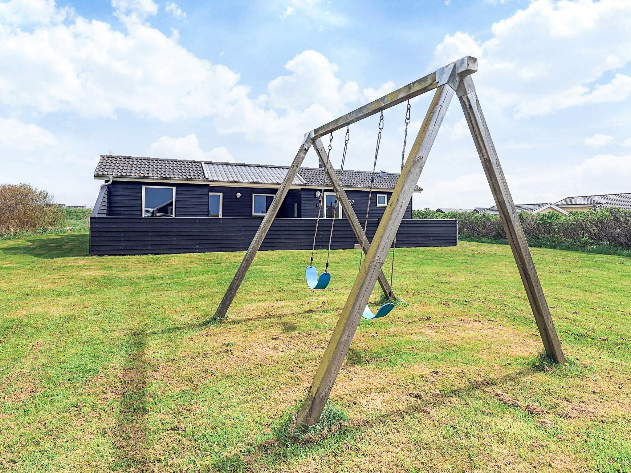Her er anlagt græsplæne på en del af grunden, så det giver masser af mulighed for leg og anden aktiviteter. Til de mindste findes bl.a. gynge samt sandkasse. Fra huset er der udgang til de store terrasser, hvoraf en del er overdækket. Her findes plads såvel i solen, som i skygge. På terrassen er der også havegrill og rig mulighed for at solnedgangen over havet. Udlejes ikke til ungdomsgrupper.