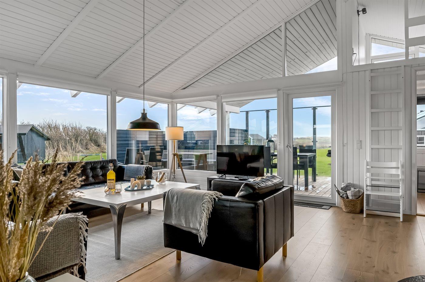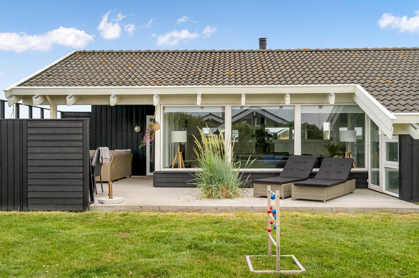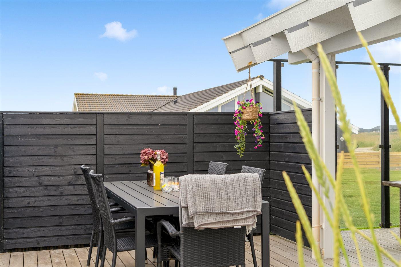 Rundt om huset er der skønne terrasser med fine havemøbler, hvor man rigtig kan nyde den friske havluft og solen.