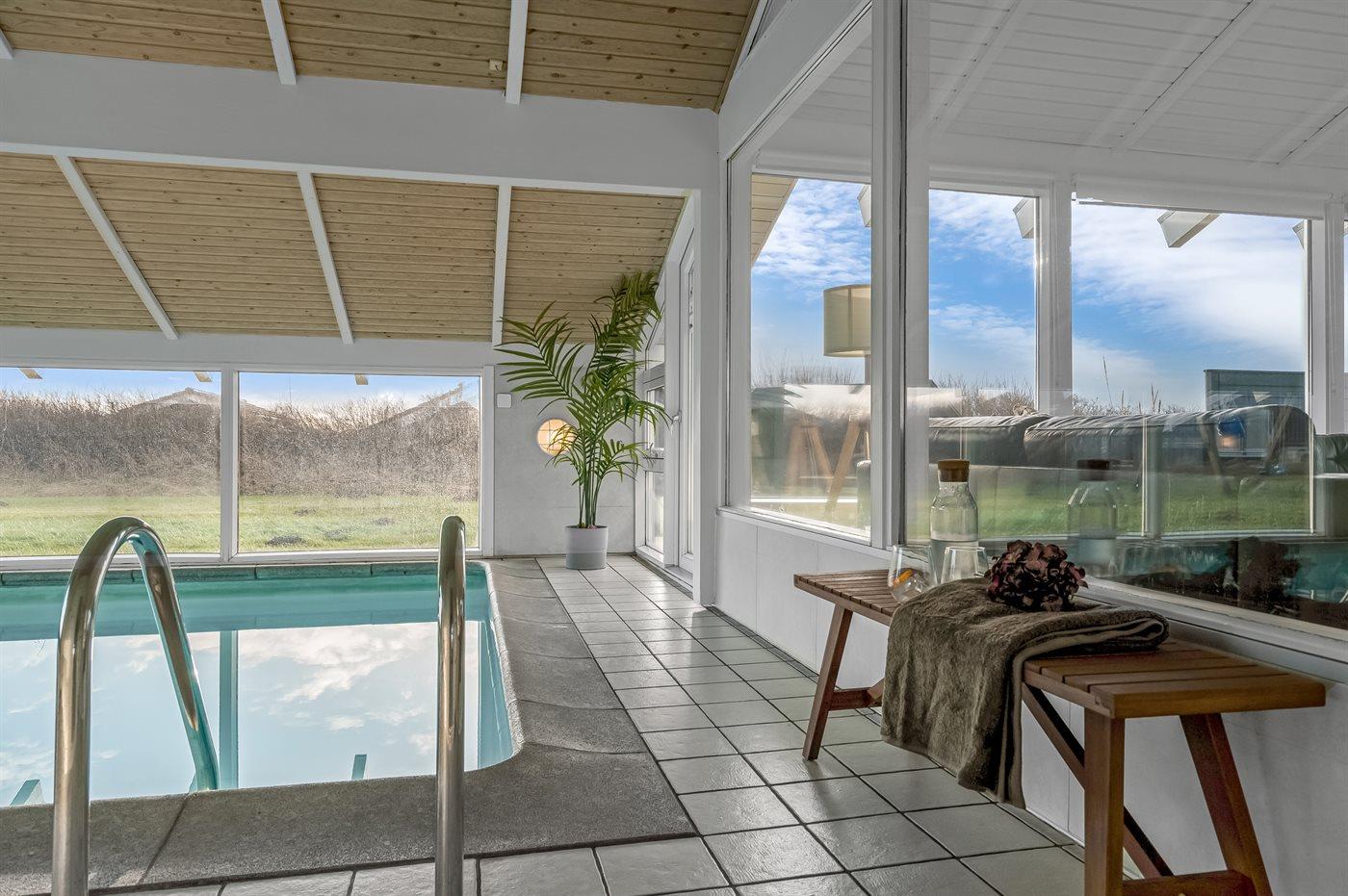 Nyrenoveret sommerhus med indendørs pool nær Løkken og strand, ideelt til familieferie i naturskønne omgivelser.