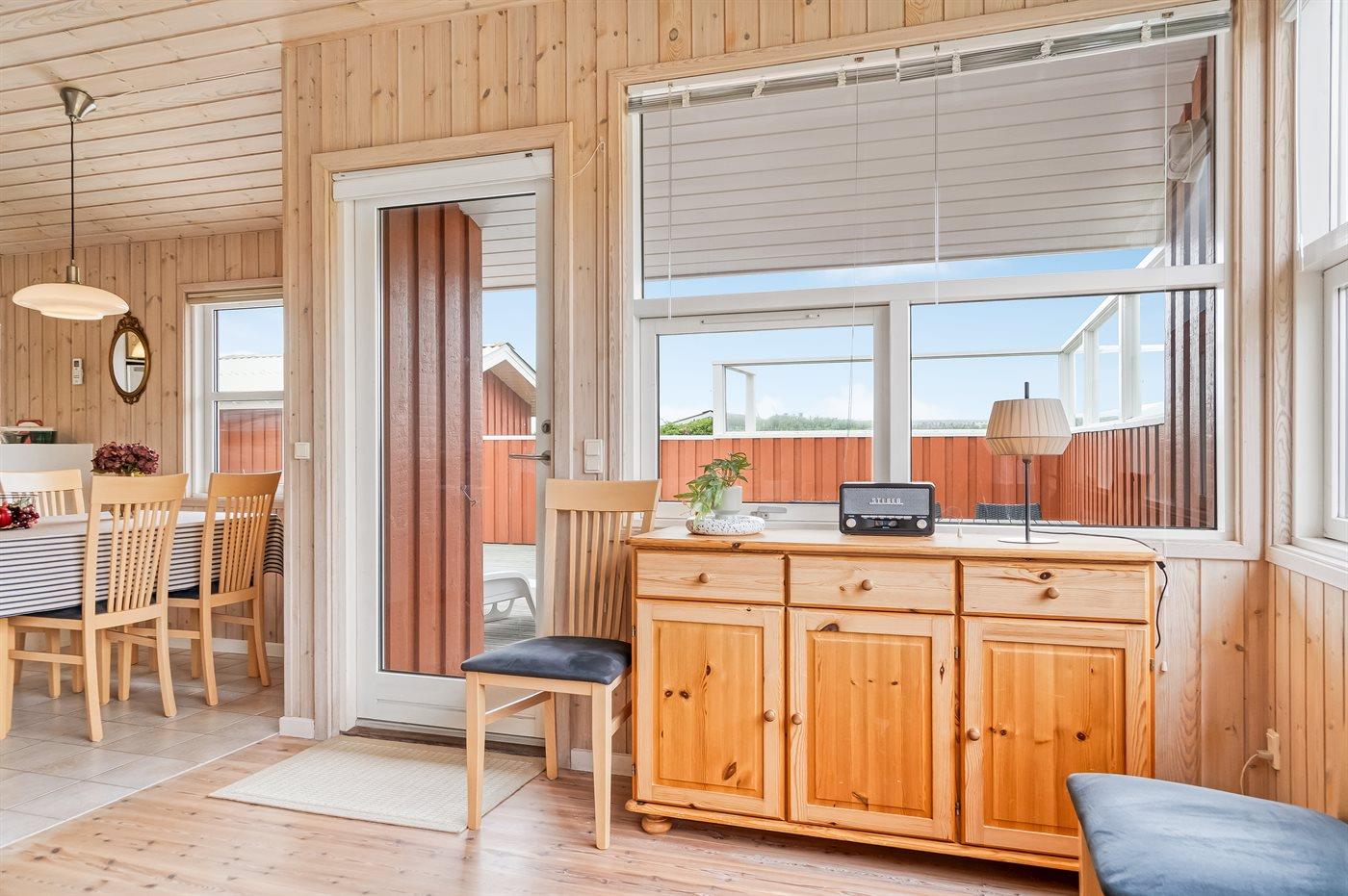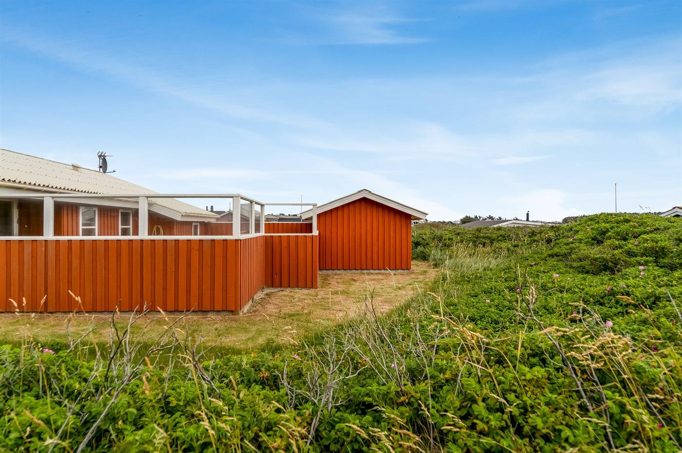 Ferieboligen er beliggende på en 800 m² stor naturgrund. Der er 75 m til havet. Nærmeste forretning er beliggende i en afstand af 600 m. Heraf i alt 60 m² lukket terrasse. Der er redskabsrum. Parkering ved ferieboligen.